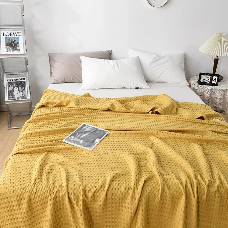 와플 순수 목화 수건 이불 전체 목화 거즈 커버 담요 점심 휴식 수건 담요 여름 멋진 거즈 이불