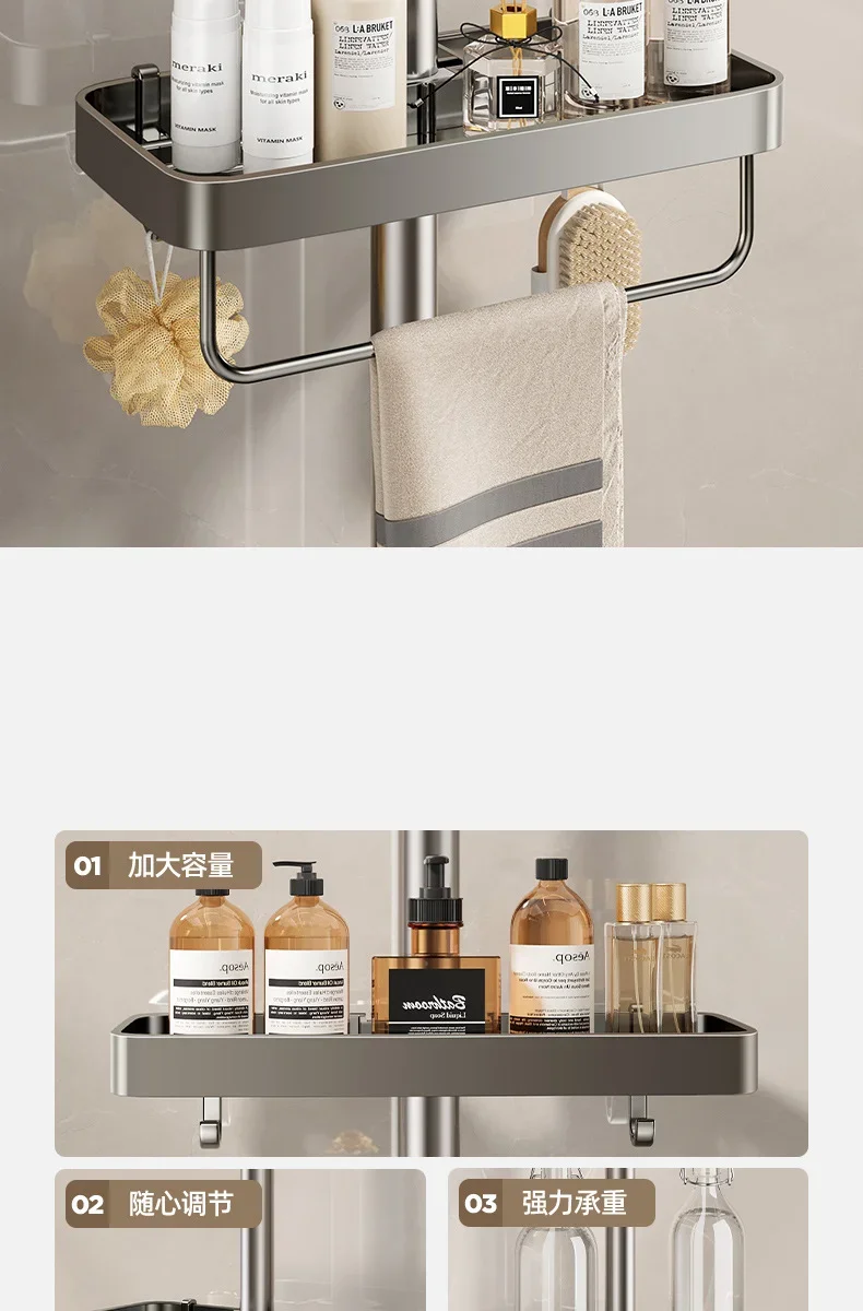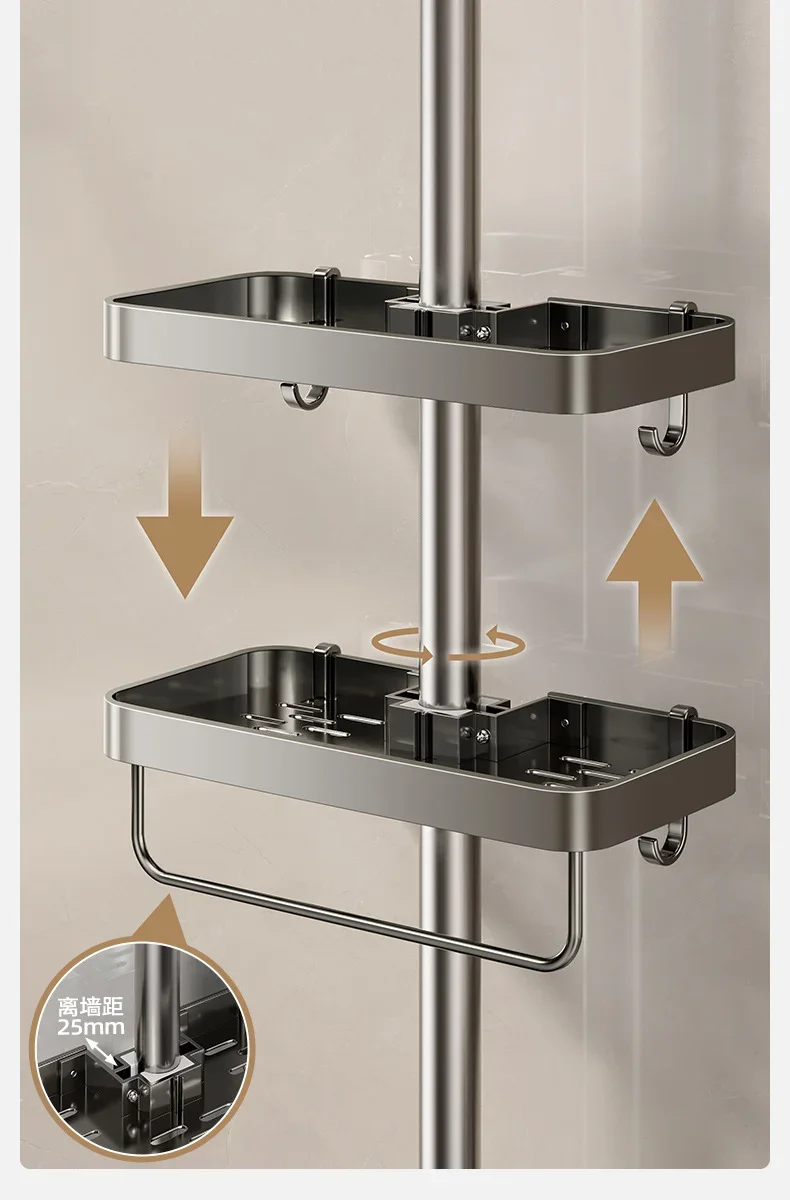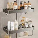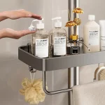 욕실 샤워 헤드 홀더 벽걸이 형 드릴링 필요 없음 샴푸 주최자 랙 통합 디자인 보관 선반