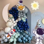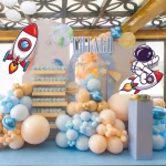 우주 비행사 생일 KT 보드 파티 컷 아웃 커스텀 로켓 우주 비행사 풍선 아치 배경, 파티 배경, 우주 배경