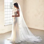 웨딩 베일 리본 가장자리 2 계층 신부 베일 웨딩 대성당 길이 커버 앞면과 뒷면 부드러운 이탈리아어 얇은 명주 그물 베일 V97