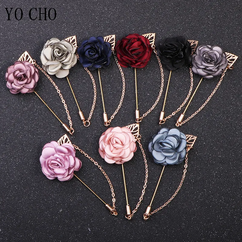 웨딩 코사지 남성 브로치 핀 신랑 들러리 Boutonniere 패브릭 장미 동백 꽃 신랑 Boutonnieres 웨딩 장식 액세서리