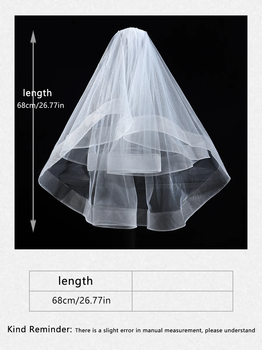 웨딩 신부 머리 장식, 로맨틱 교회 웨딩 스타일, 숙녀용 화이트 2 층 거즈 손가락 끝 베일
