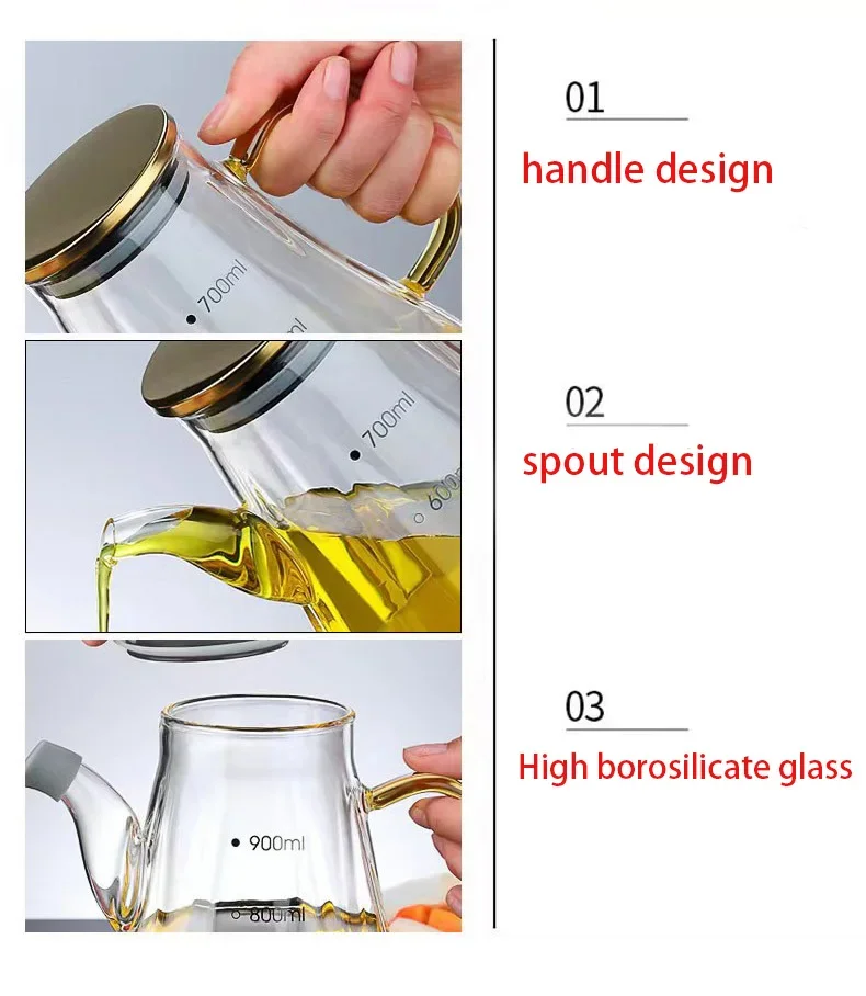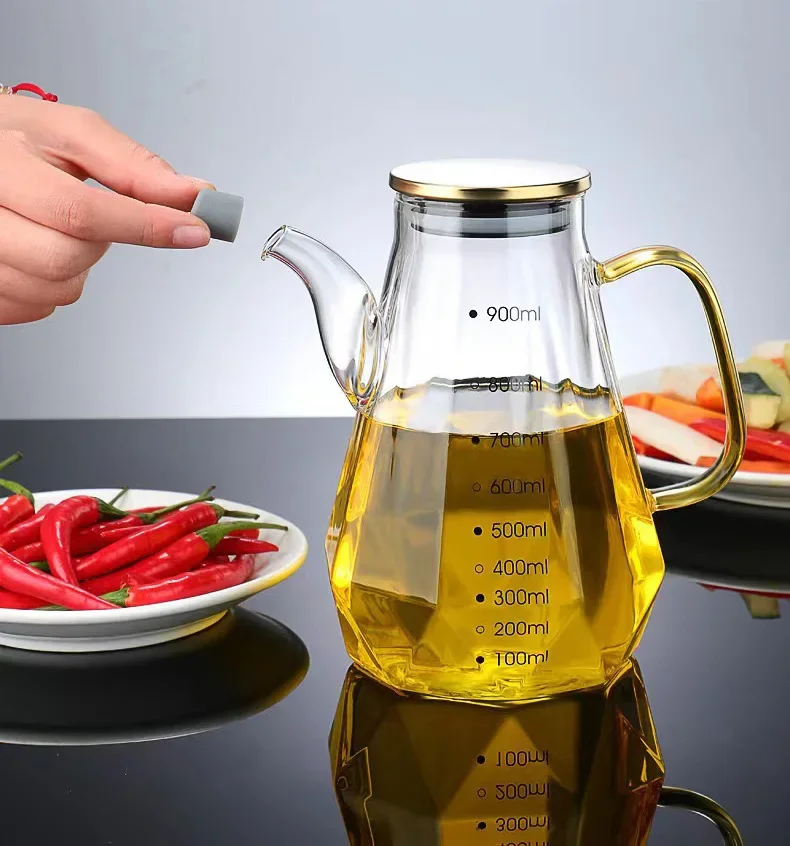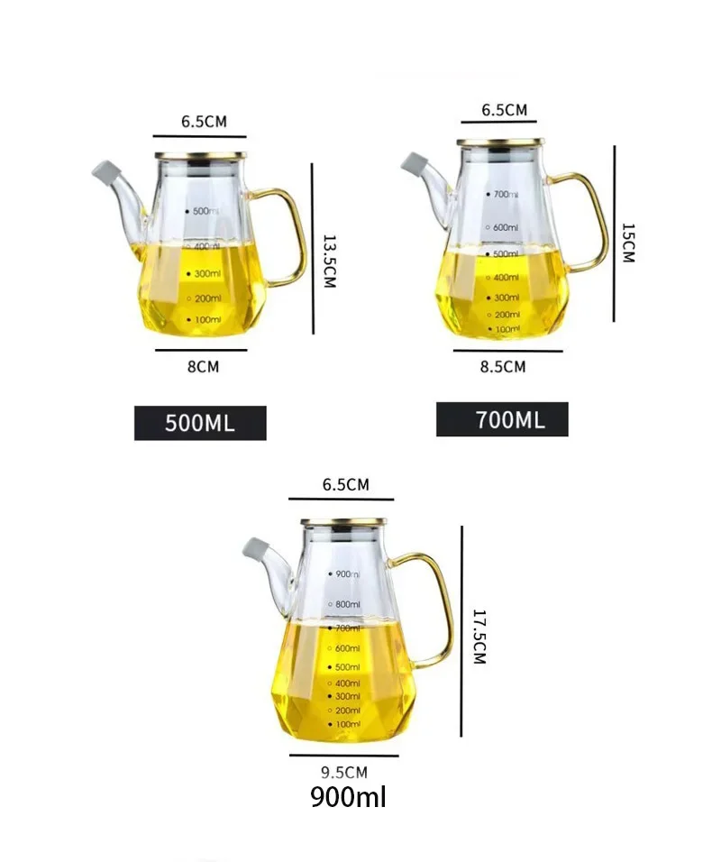 유리 오일 냄비 500/700/900ml 누출 방지 다이아몬드 오일 병 (스케일/뚜껑 포함) 주방 간장 식초 조미료 보관 용기