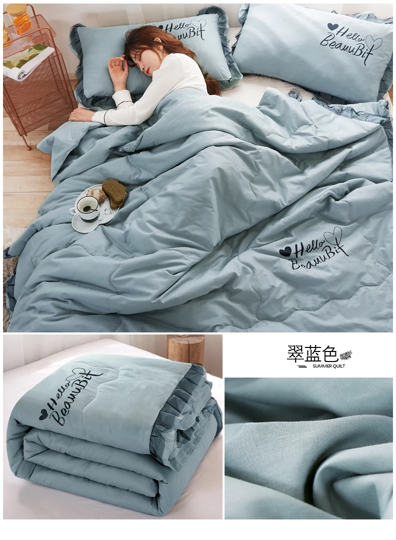 2025 새로운 유럽 스타일의 얼음 실크 여름 이불 세트 하이 엔드 수 놓은 냉각 담요 1 Pcs 세트 에어컨 이불
