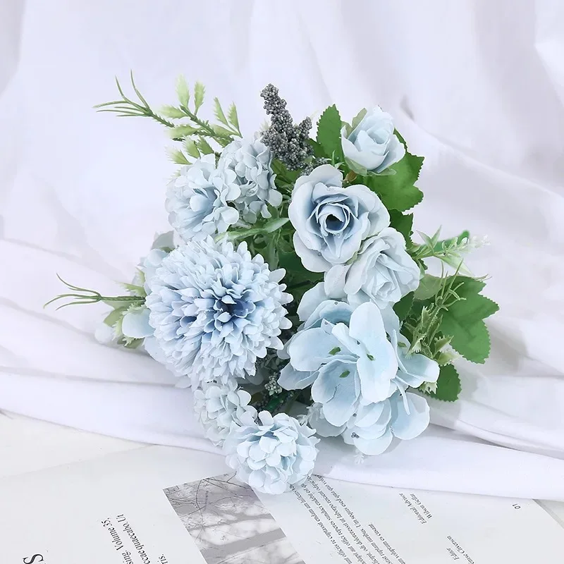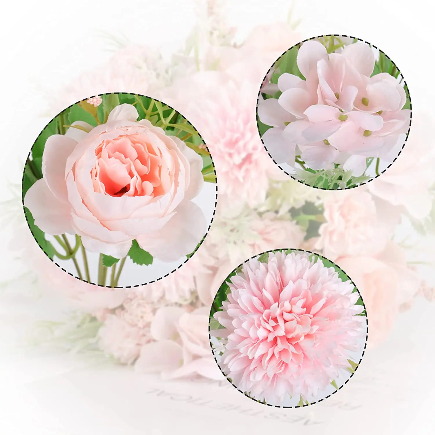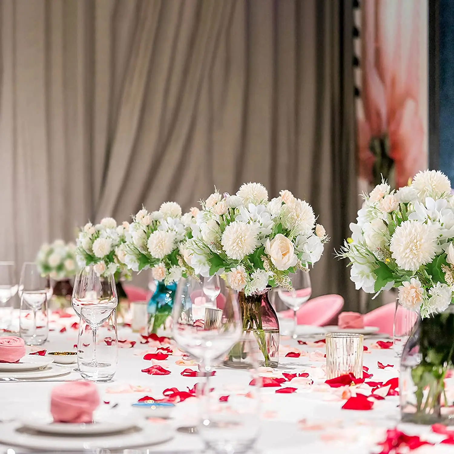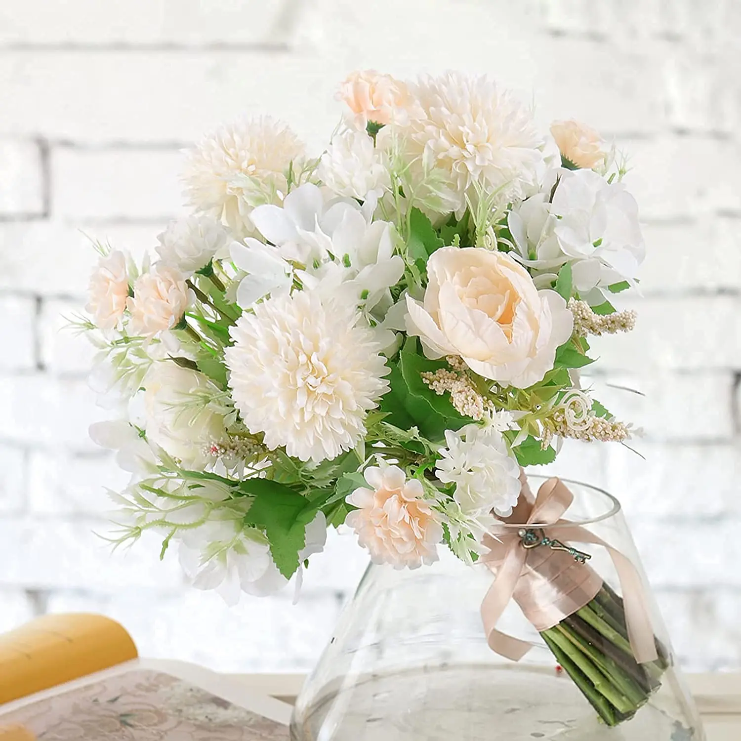 3 PACK 인공 꽃 장미 꽃다발 가짜 꽃 홈 가든 파티 웨딩 장식을위한 흰 장미 신부 웨딩 부케