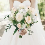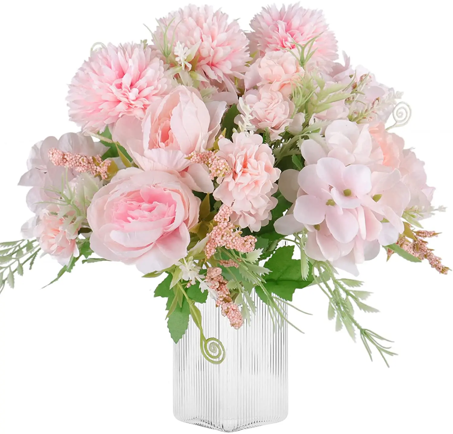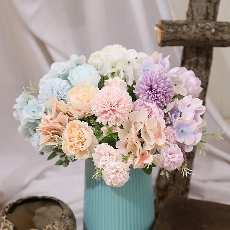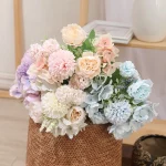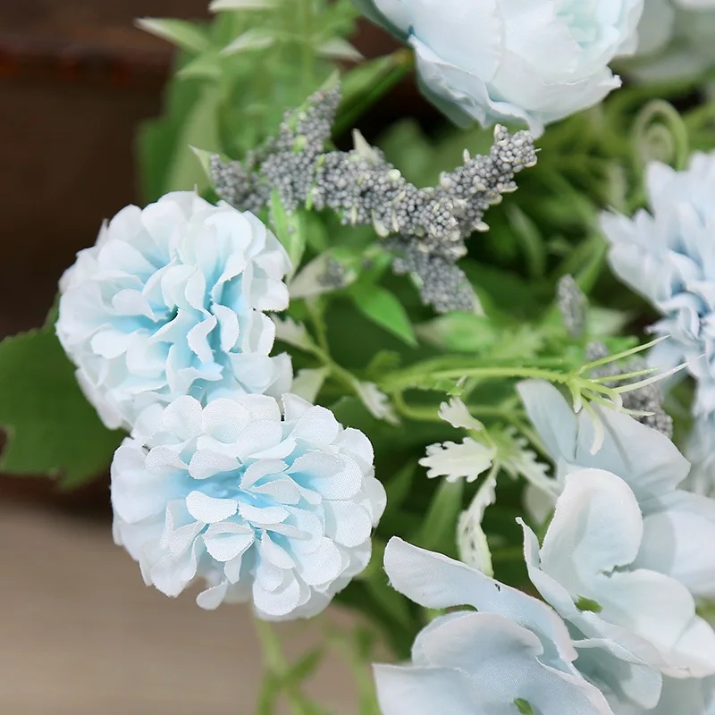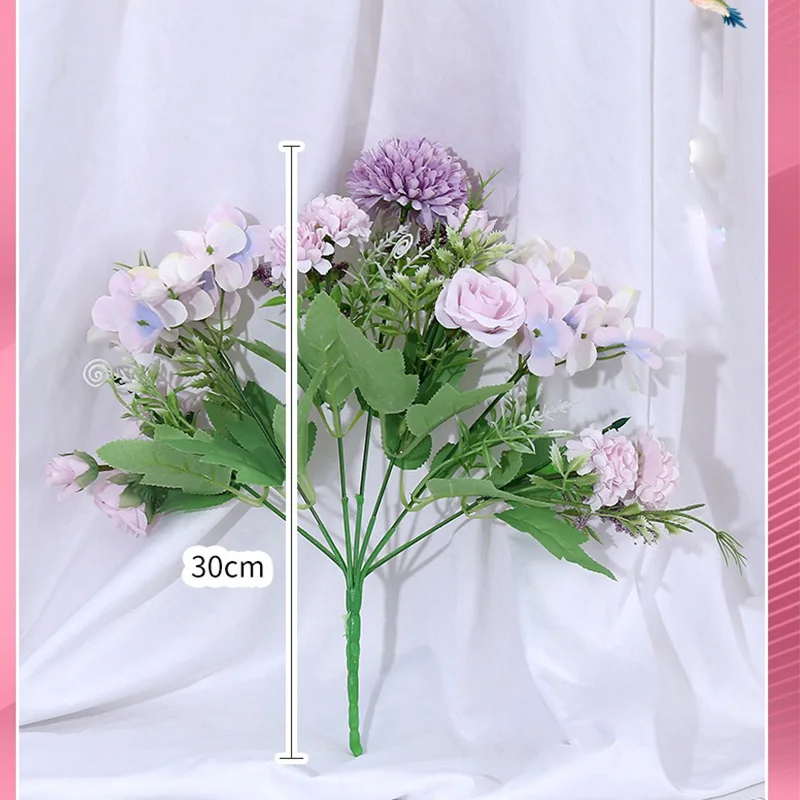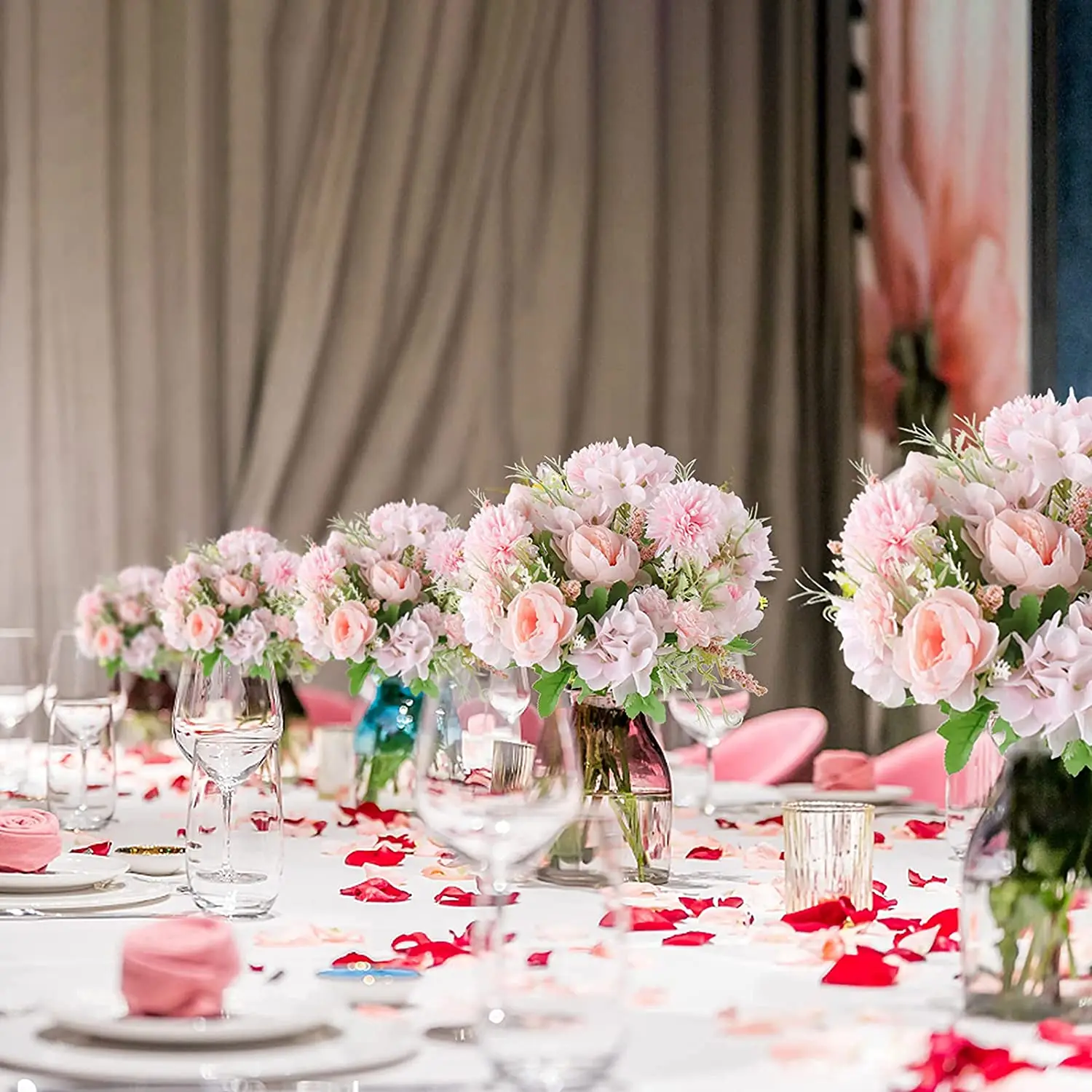 3 PACK 인공 꽃 장미 꽃다발 가짜 꽃 홈 가든 파티 웨딩 장식을위한 흰 장미 신부 웨딩 부케