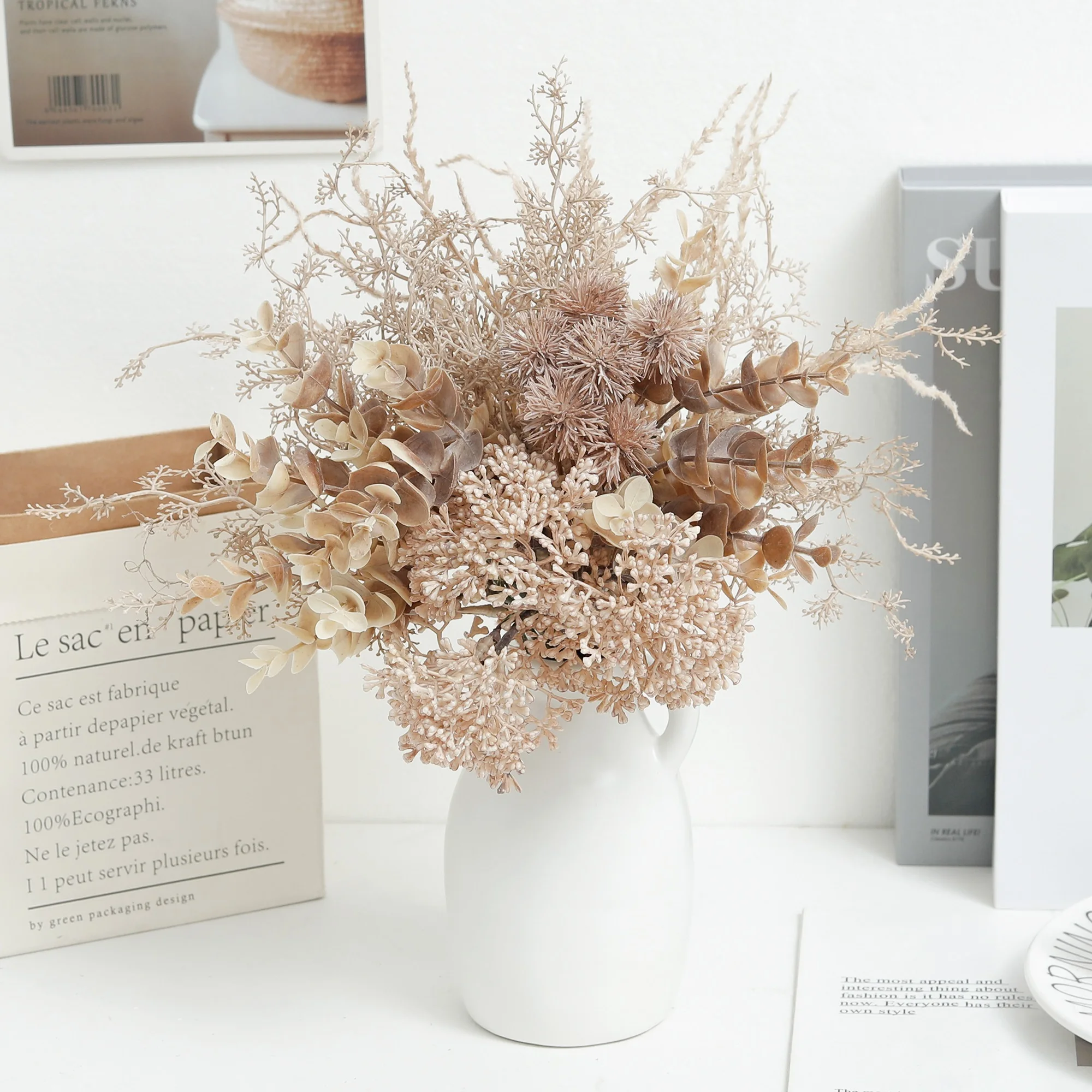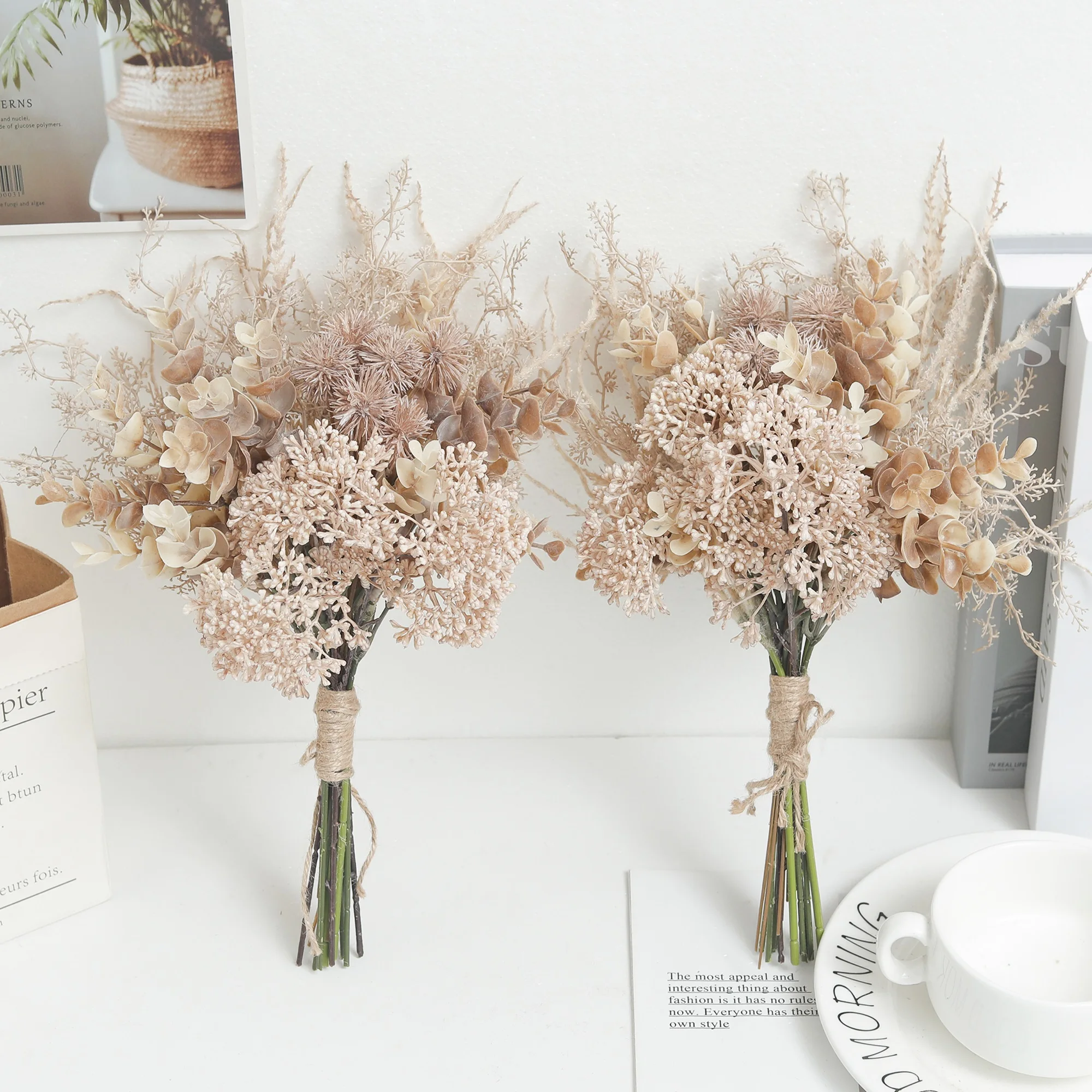 인공 플라스틱 꽃 유칼립투스 민들레 소박한 현대 야외 홈 가짜 웨딩 가을 장식을위한 수제 꽃다발