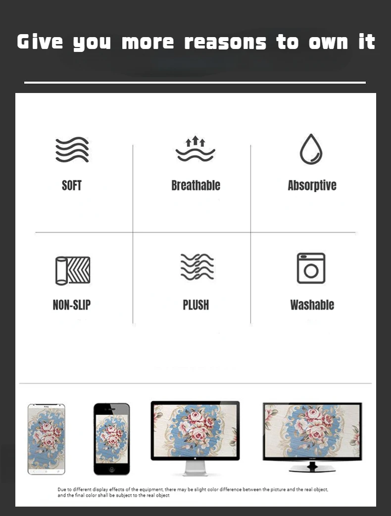 제품 특징: 푹신하고 부드럽고 편안하며 물 흡수, 내마모성 및 미끄럼 방지