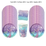 인어 생일 장식 소녀 일회용 종이 접시 컵 냅킨 플라스틱 빨대 베이비 샤워 웨딩 파티 용품