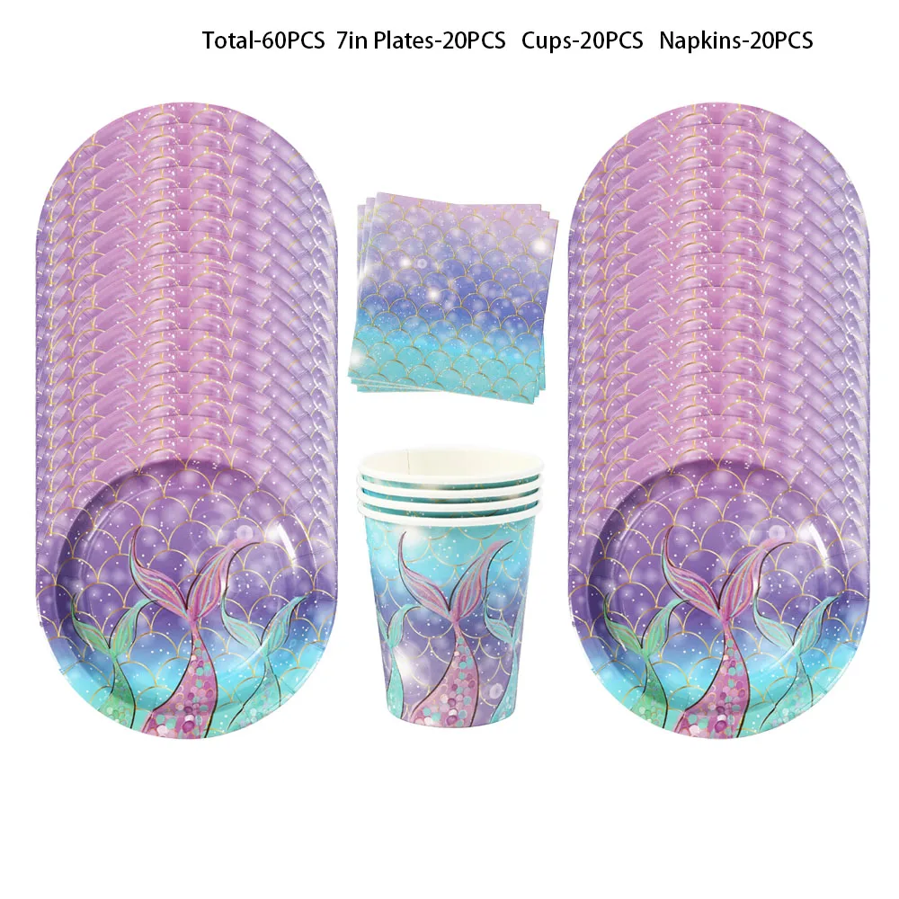 - Mermaid Party Decorations: Mermaid Disposable Plates,Mermaid Disposable Cups,Mermaid Disposable Napkins