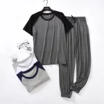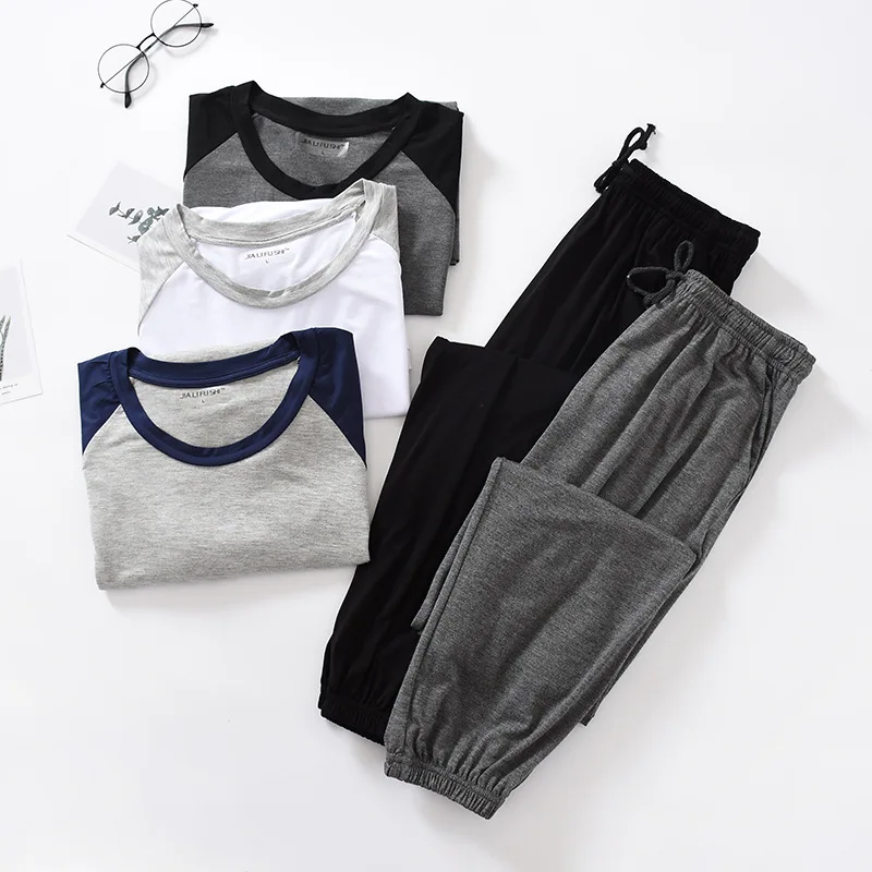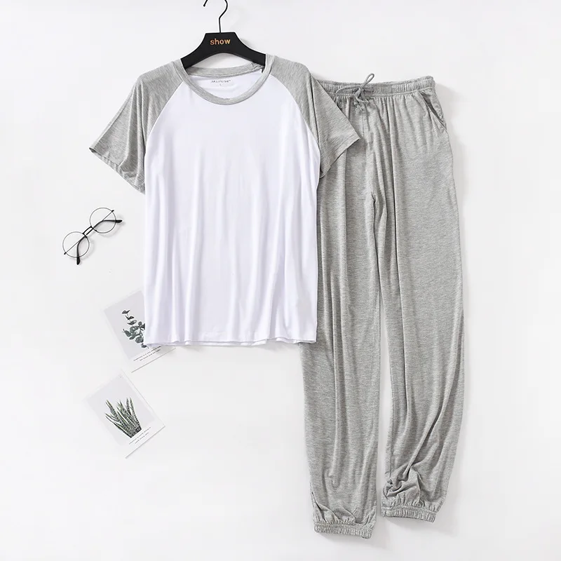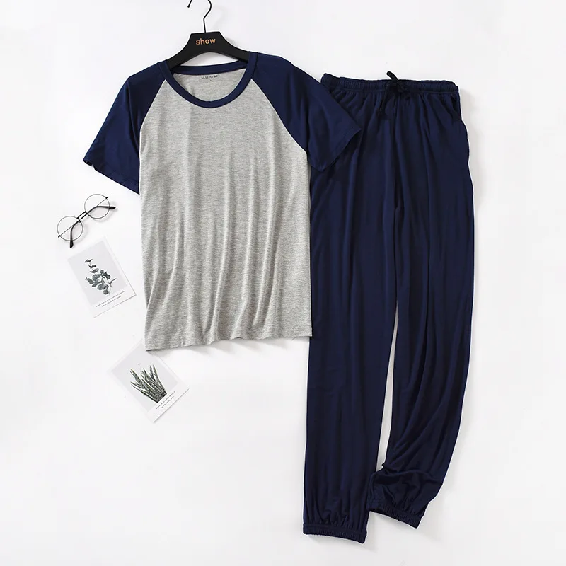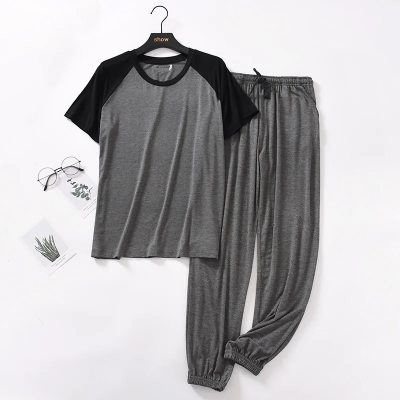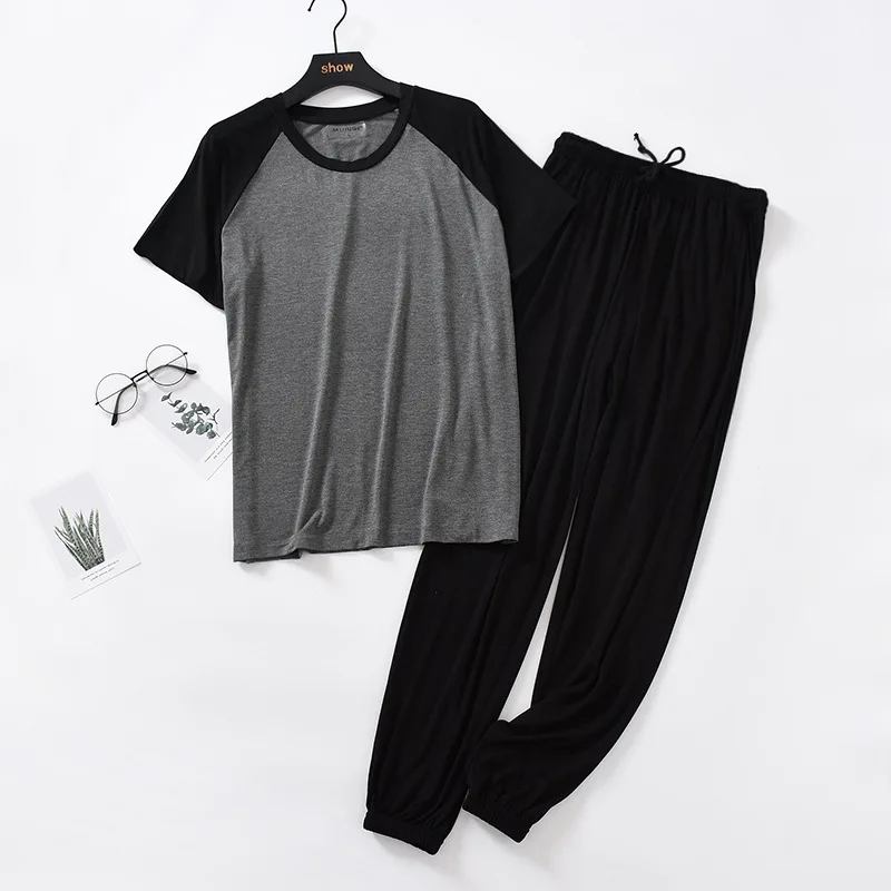 일본 봄 여름 남성용 모달 잠옷 슈트, 반팔 바지, 얇은 스티칭, 뚱뚱한 대형 사이즈, 루즈 홈 서비스