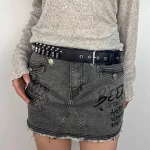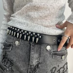 자석 버클 벨트 PU 합성 가죽 청년용 여성용 빈티지 Y2K 레트로 피어싱 데님 남성용 독특한 개성 소수 문화 벨트