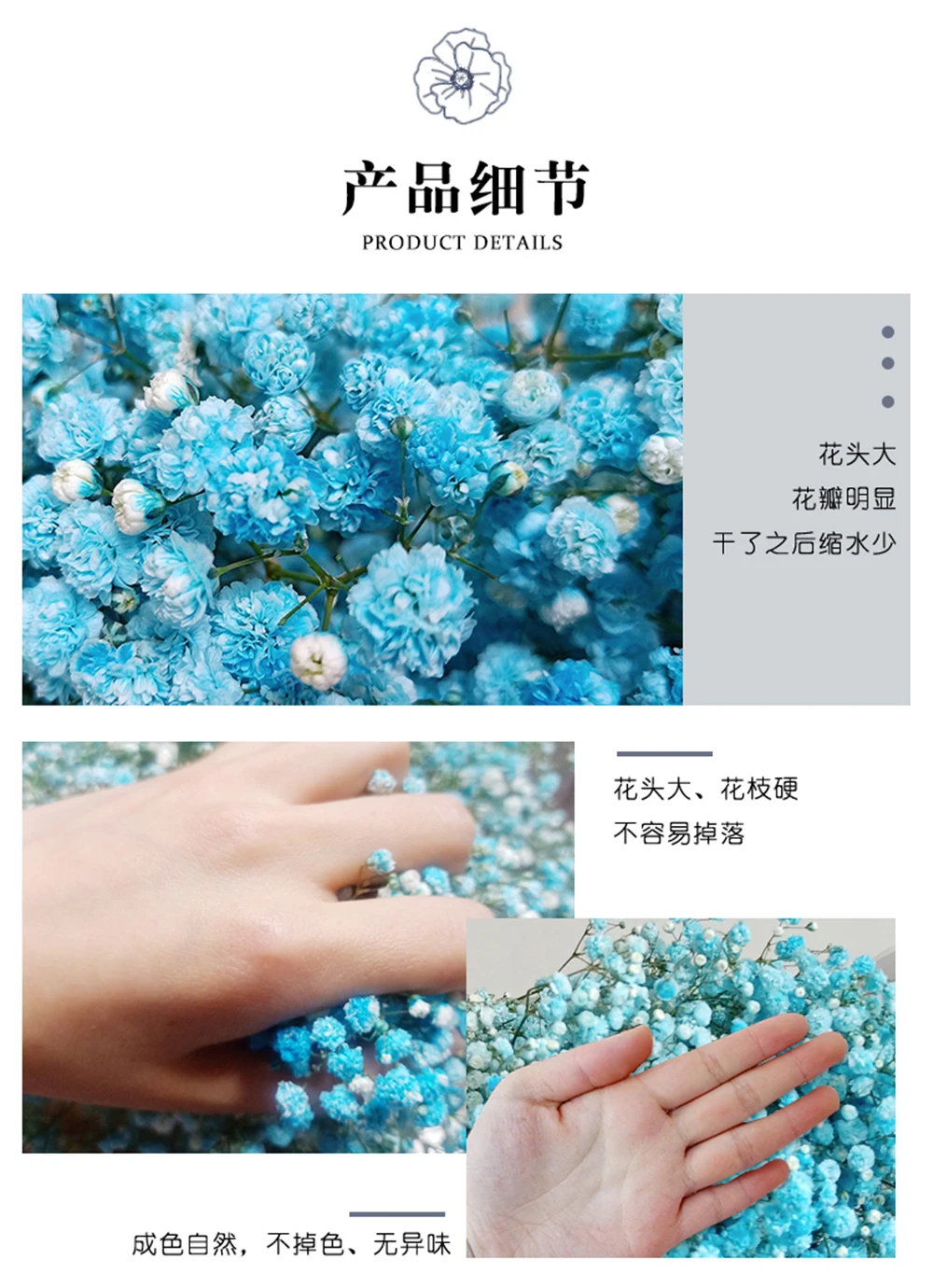 4. Durability, real than artificial flowers, can be used continuously for more than one year, not subject to seasonal restrictions, usually does not fade.