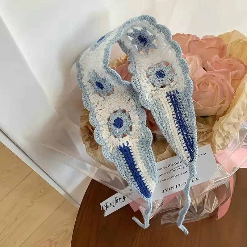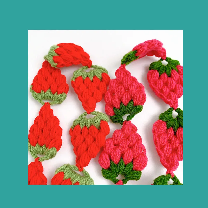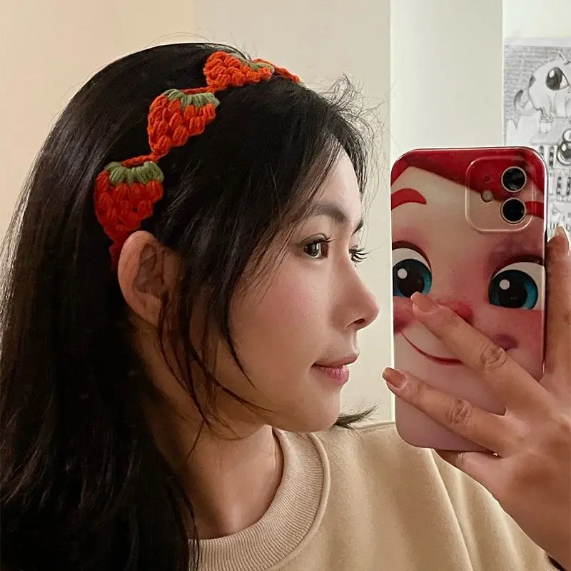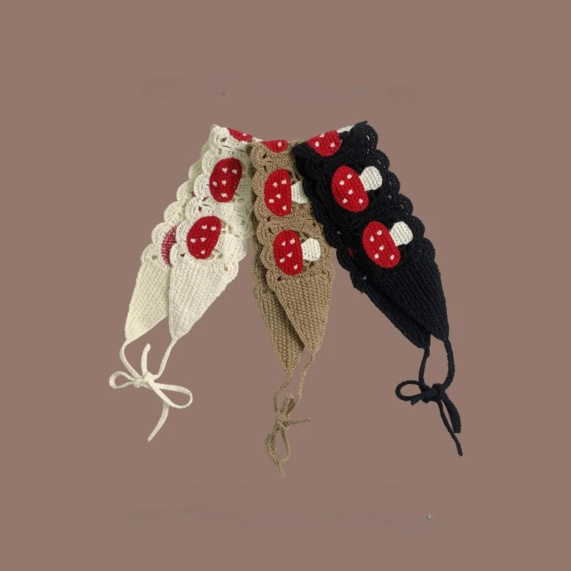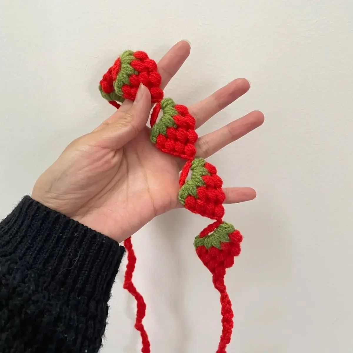 작은 딸기 머리띠 크로 셰 뜨개질 달콤한 귀여운 헤어 밴드 여성 스카프 머리띠 Bandanas 넓은 탄성 Hairbands 패션 액세서리