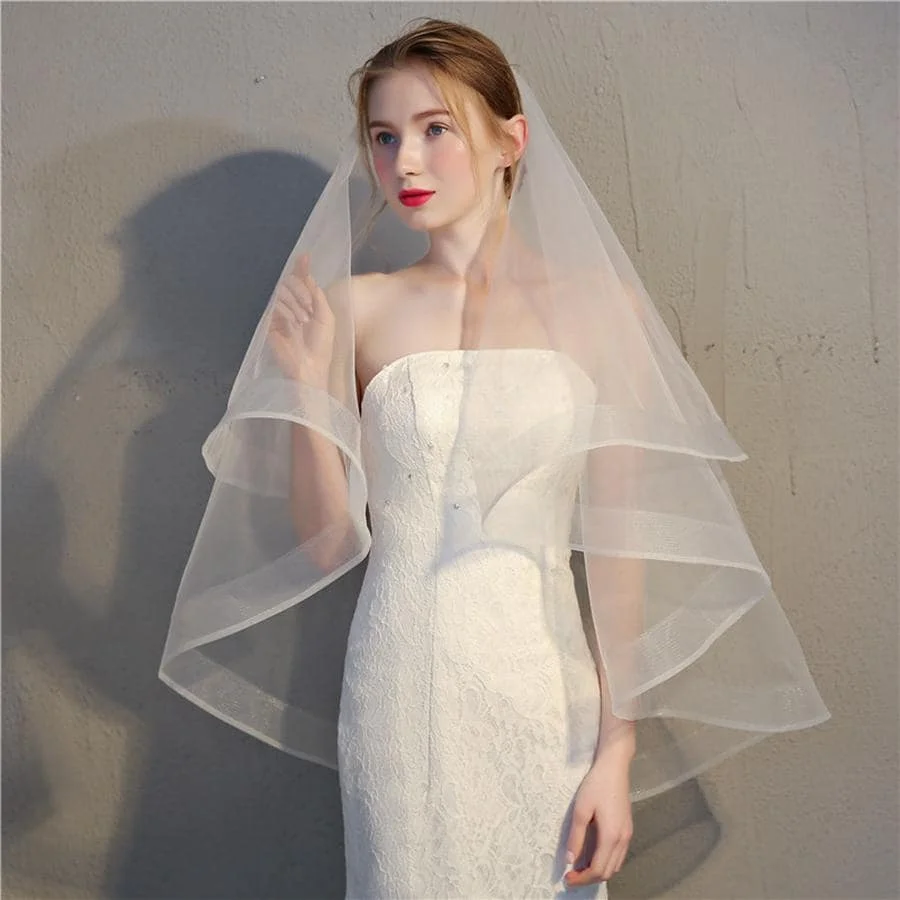 재고 있음 짧은 웨딩 베일 두 레이어 신부 화이트 아이보리 신부 베일 신부 액세서리 Boda 2025