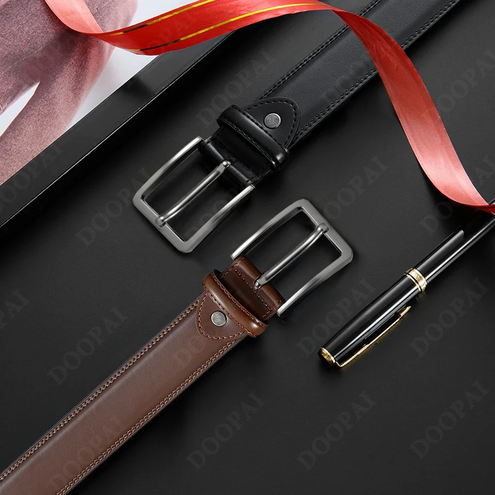 조정 가능한 금속 버클 바늘 버클 헤드 더블 레이어 소가죽 프리미엄 남성용 비즈니스 벨트, 다양한 색상 제공