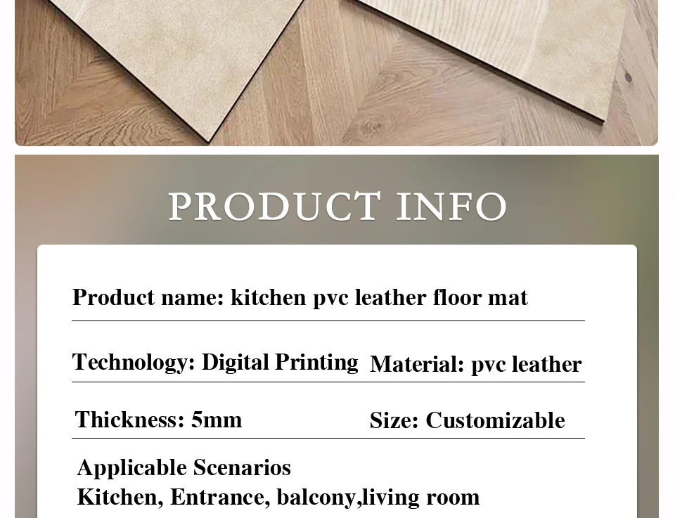 지금 보고 계시는 바닥매트는 주방에서 전문적으로 사용되는 매트입니다.그 직물은 가죽 PVC입니다.주요 특징은 방수, 내유성 및 미끄럼 방지입니다.동시에 부드럽고 탄력 있는 원단은 식기가 떨어져서 깨지는 것을 방지할 수도 있습니다.