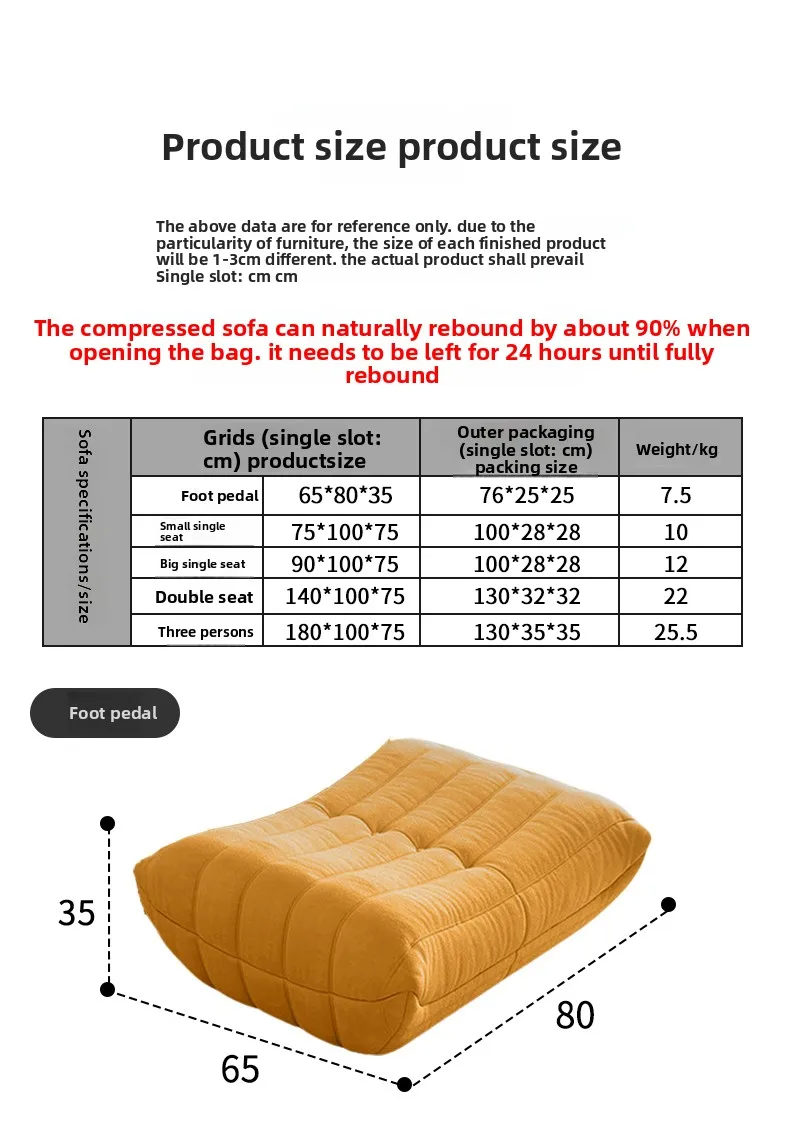 진공 압축 소파 캐터필러 모양 풀 스펀지 레이지 압축 소파 1인용 의자 발코니 거실용