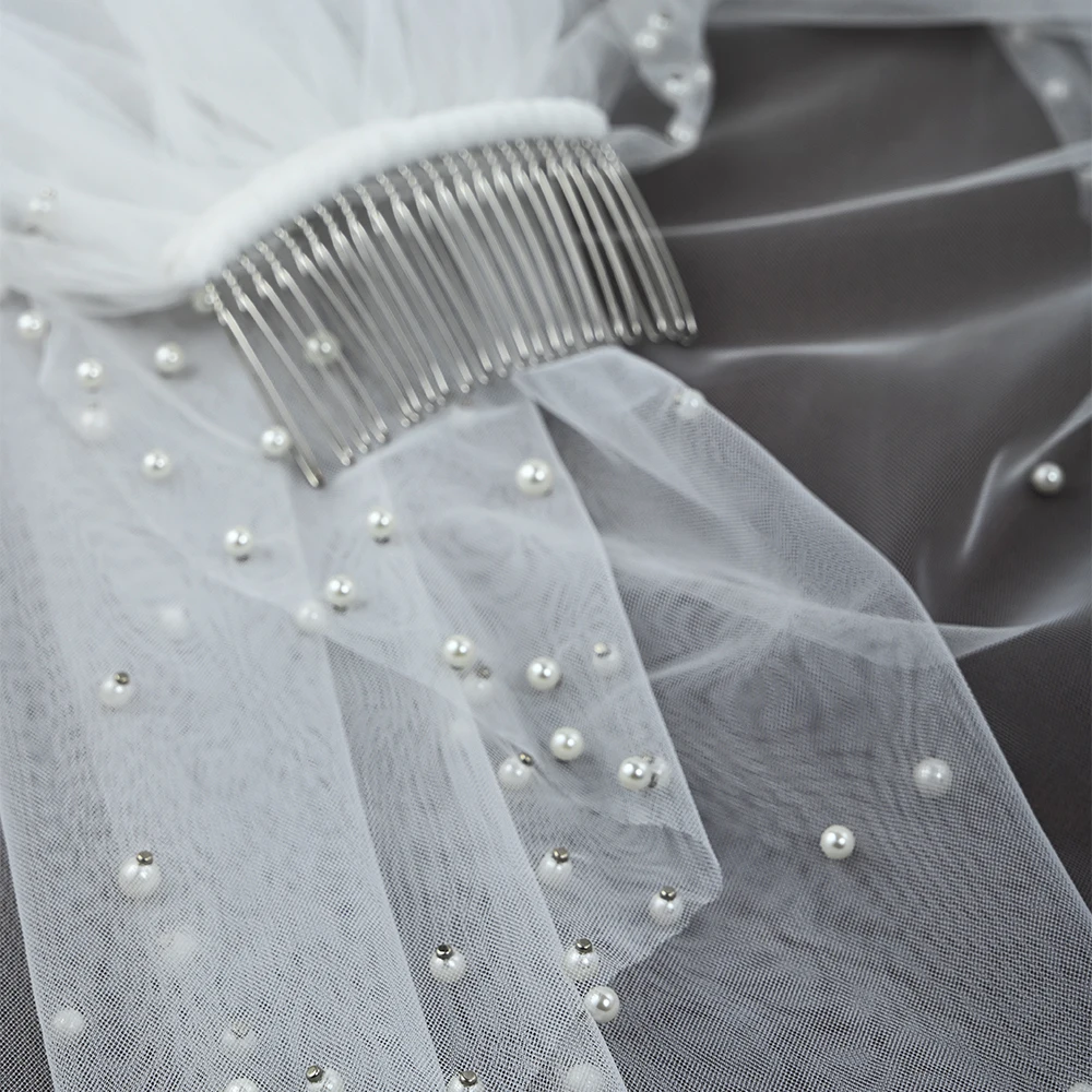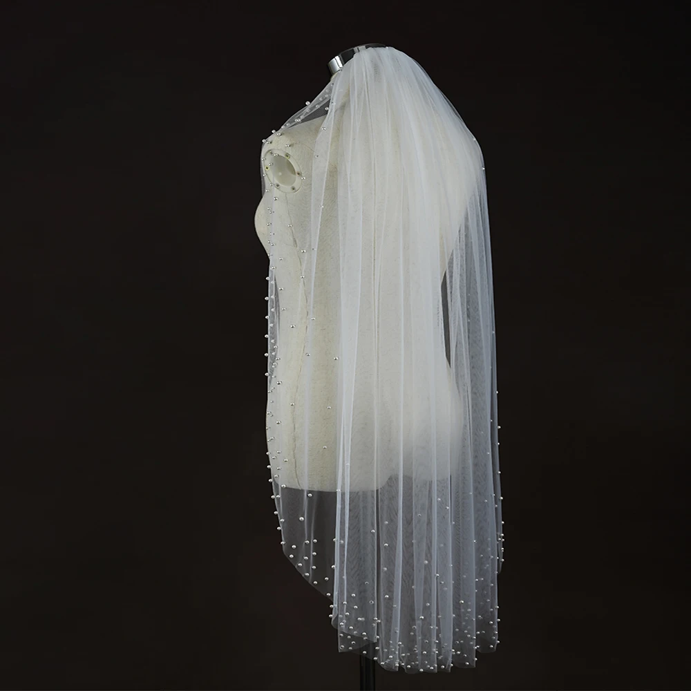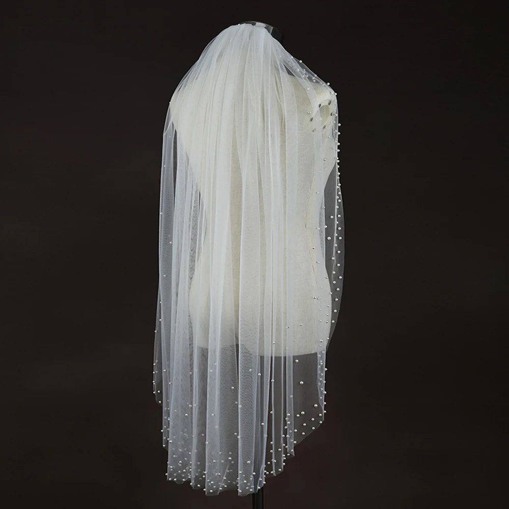 진주 신부 베일 웨딩 짧은 구슬 가장자리 베일, 빗 포함, 1 단 팔꿈치 길이, 웨딩 신부용 완벽한 액세서리, VP84