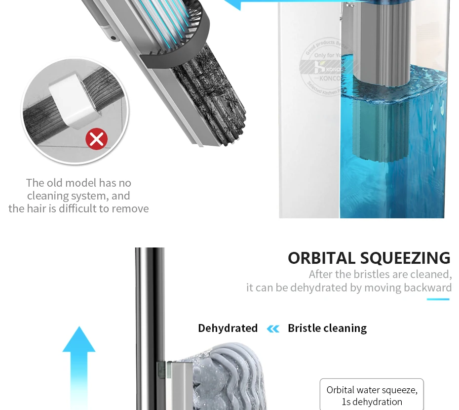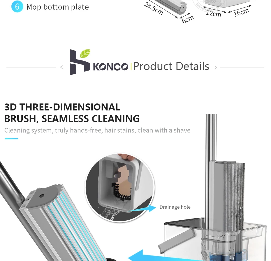 【걸레 세척 】: 브러시로 바닥 청소를위한 걸레. 세탁 및 칫솔질 후 바닥 걸레 헤드가 훨씬 깨끗해집니다.