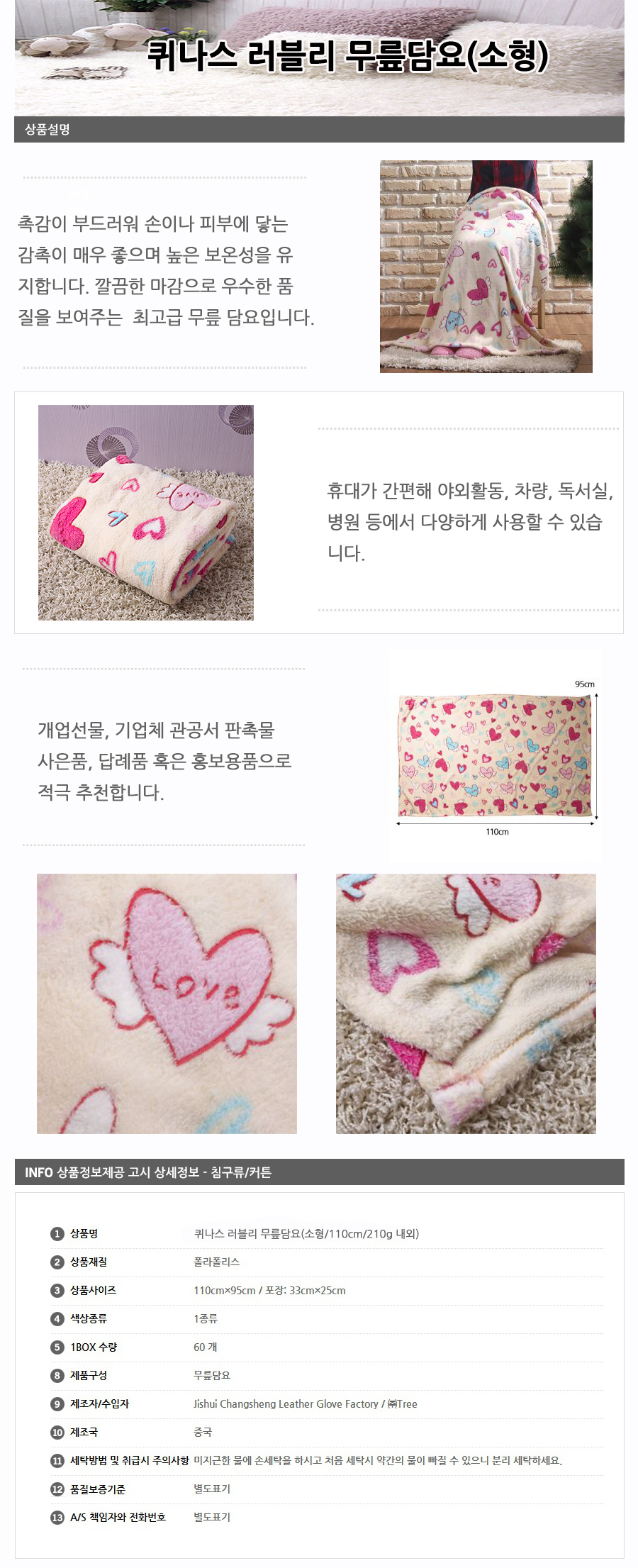 퀴나스 러블리 무릎담요(소형)-예쁜무릎담요 고급무릎담요 돌답례품무릎담요 차량용담요