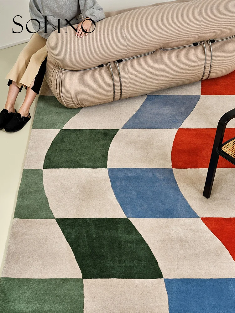 클래식 빈티지 격자 무늬 러그, 홈 불규칙 플러시 카펫, 모던 스타일 침실 장식, 침대 옆 카펫, 두꺼운 트렌디 아트 플로어 매트