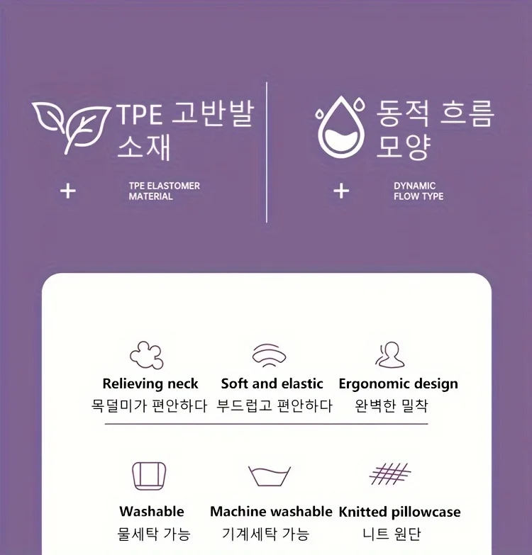 펙틴 베개 통기성 공기층 TPE 베개 물로 세탁 가능, 제로 압력 자궁 경부 목 베개 라텍스 성인 싱글 베개