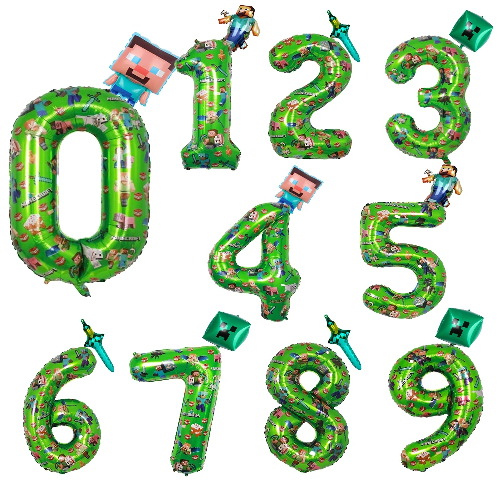픽셀 캐릭터 마이 월드 알루미늄 필름 풍선 마인크래프트 배틀 스티브 다이아몬드 검 벌 게임 파티 데코 블록 디지털 선물 2개