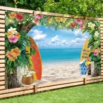 “하와이 루아 파티 배경 열대 해변 배너 바 테마 종려나무 서핑 보드 여름 알로하 사진 배경 생일”의 첫 상품평을 남겨주세요