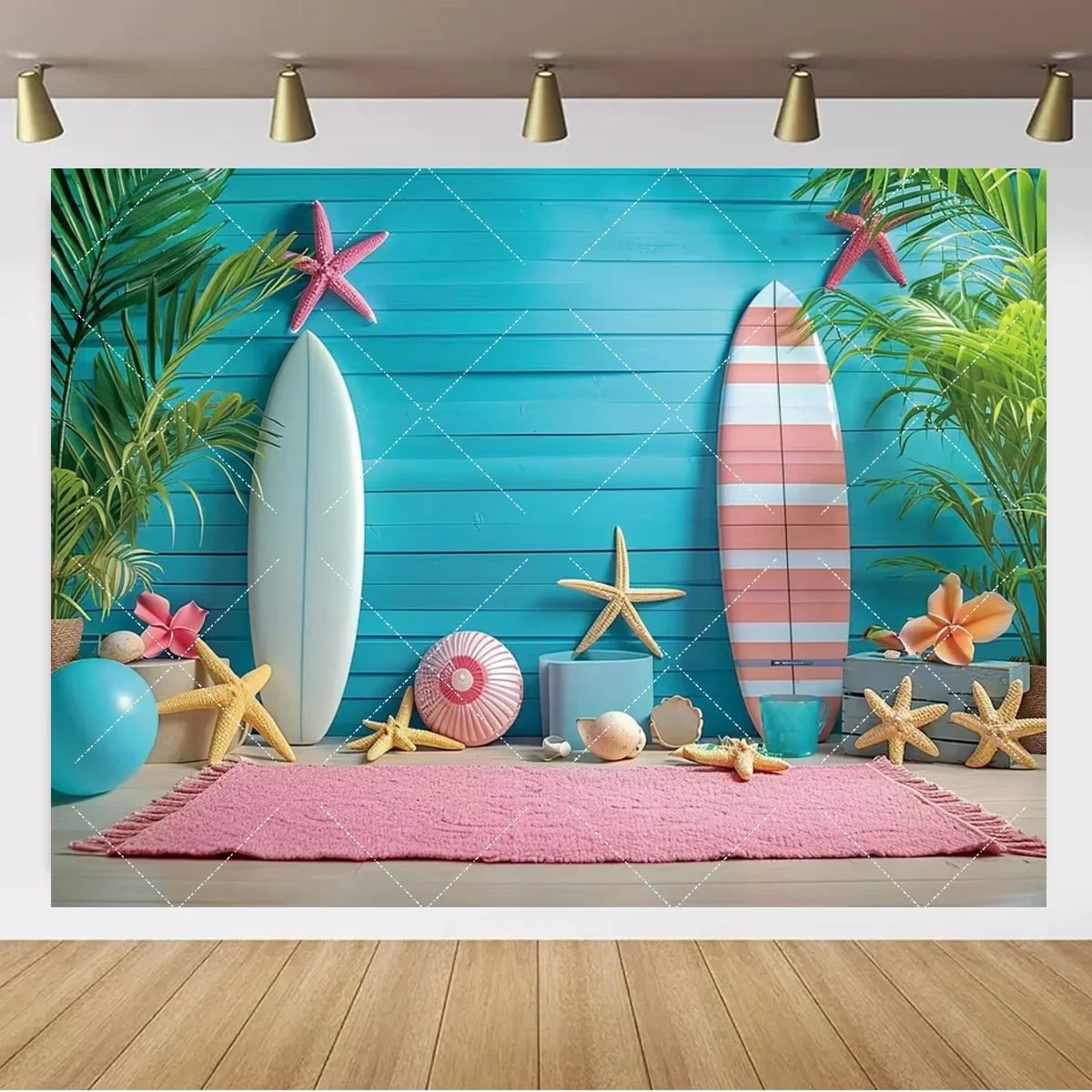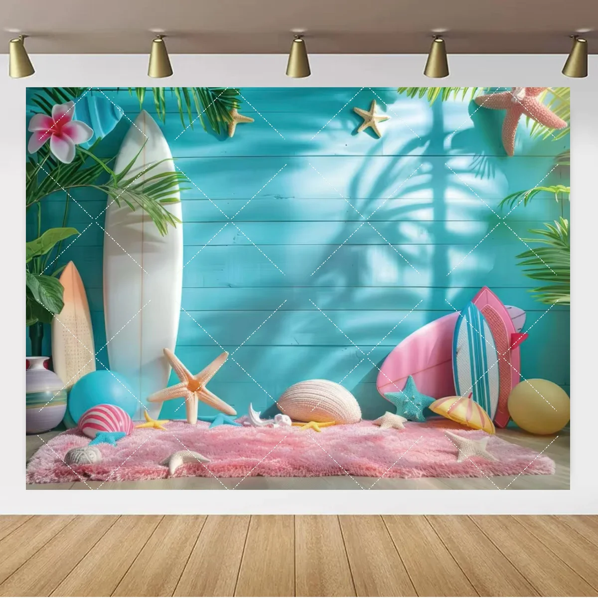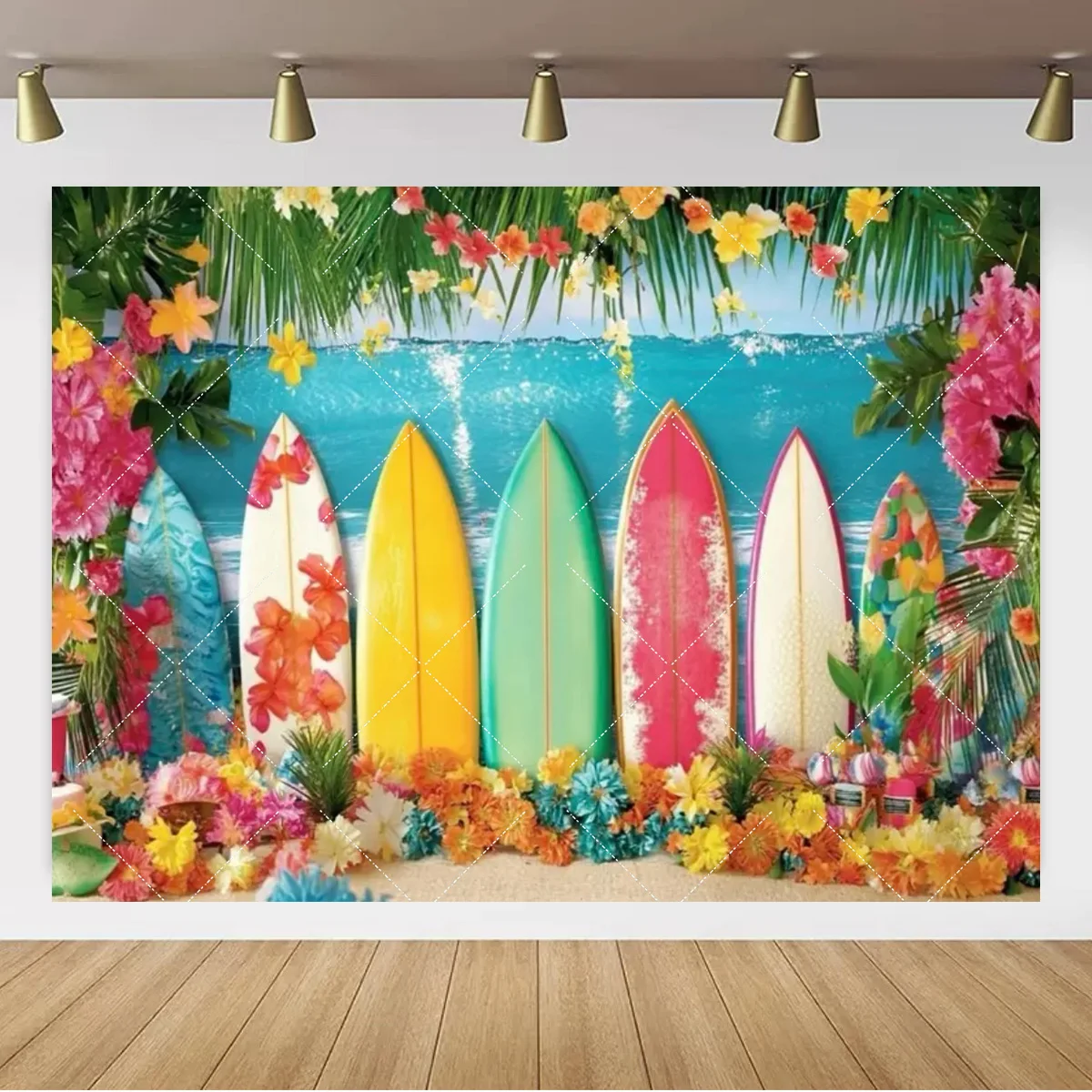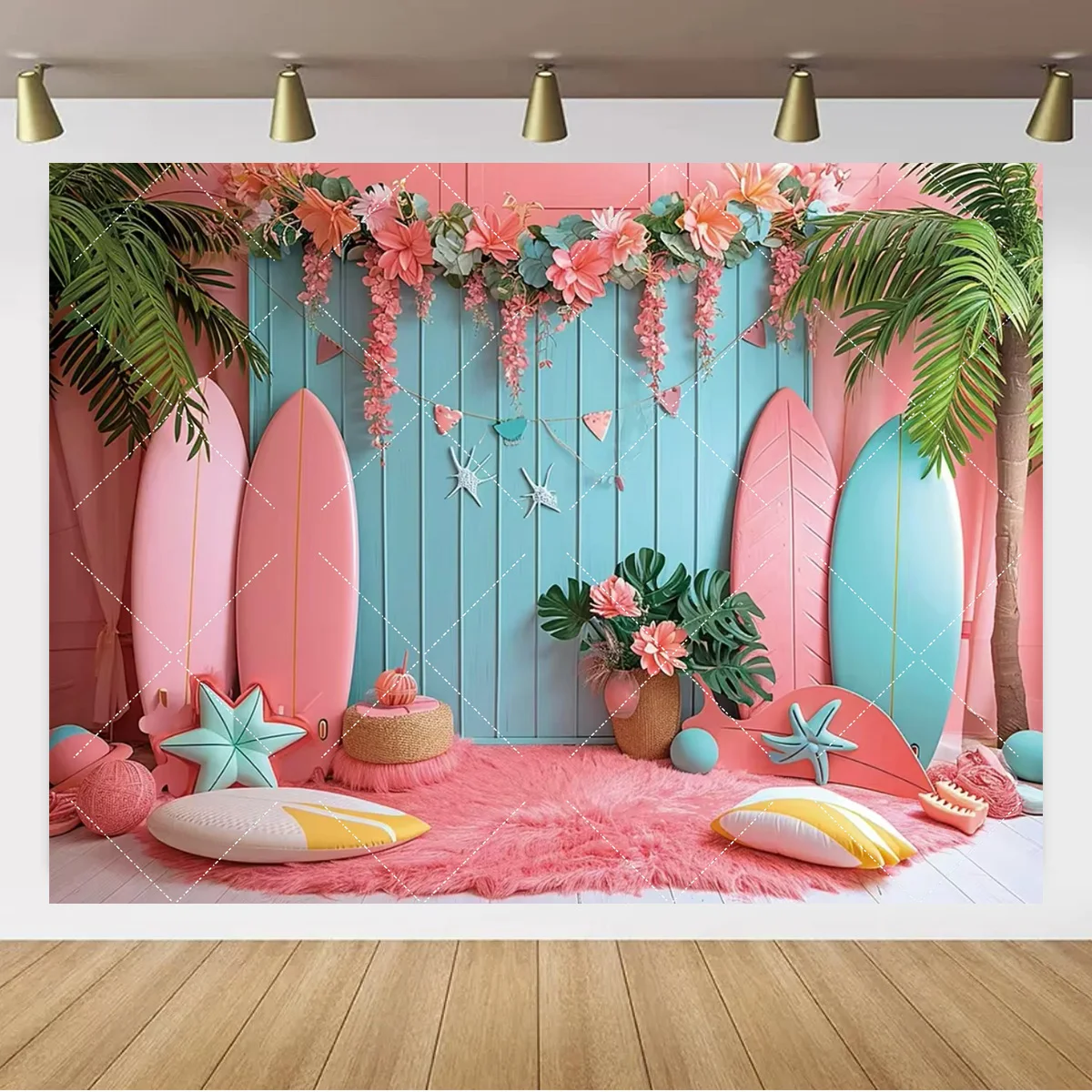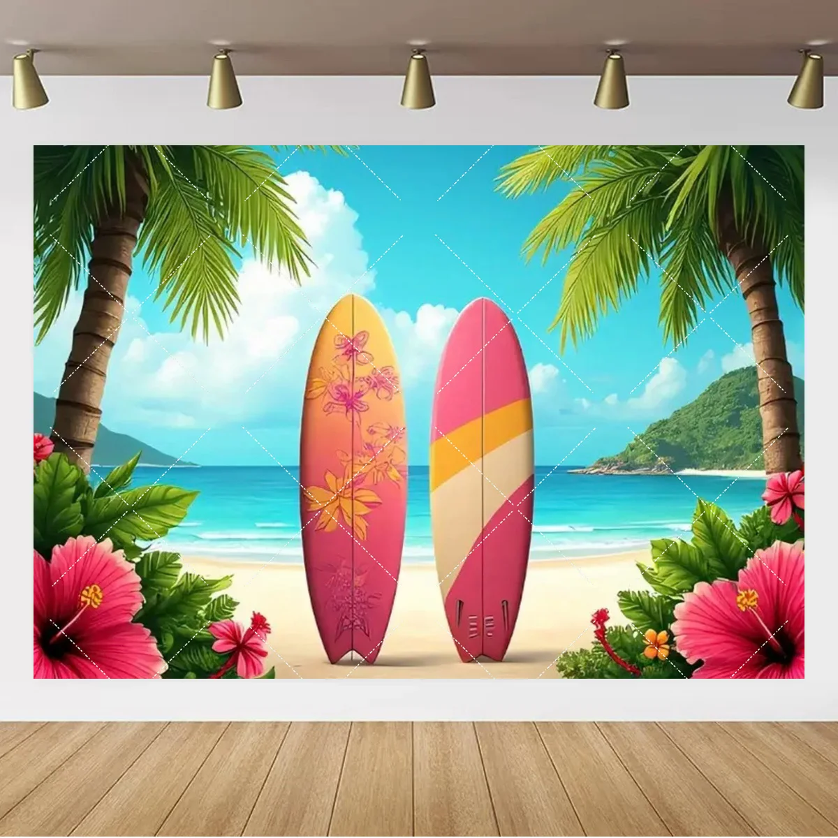 하와이 서핑 보드 야자수 아기 생일 초상화 사진 배경 여름 열대 해변 파티 장식 배너 소품