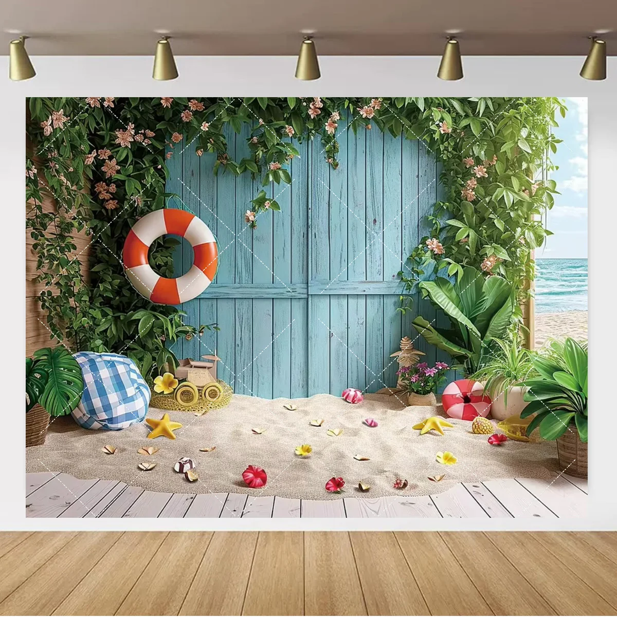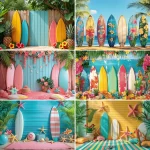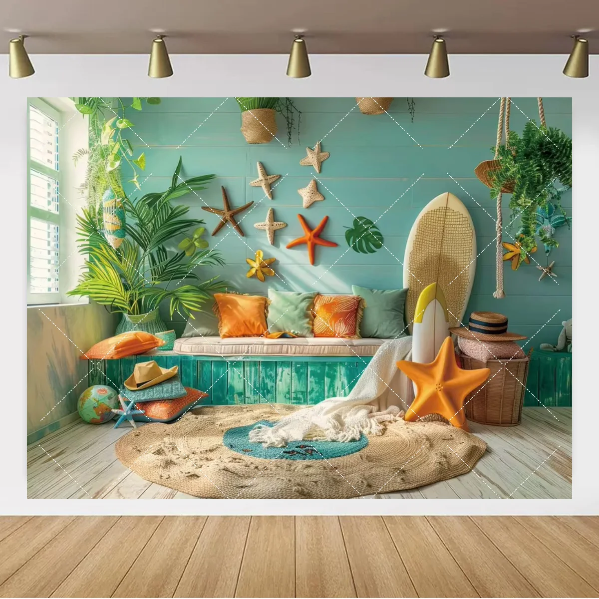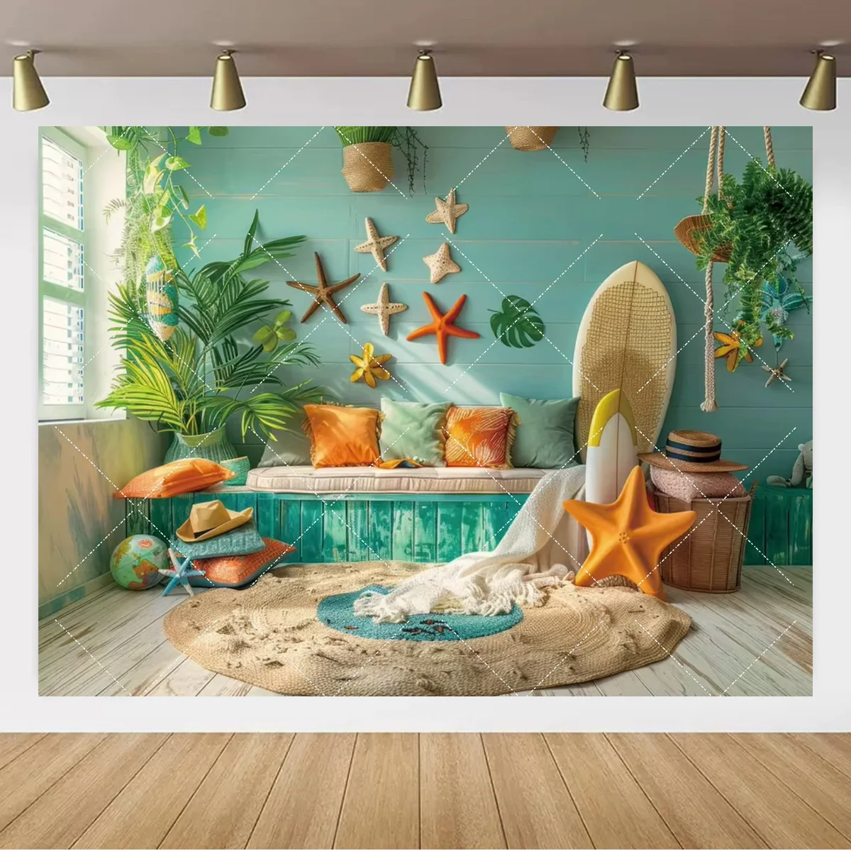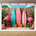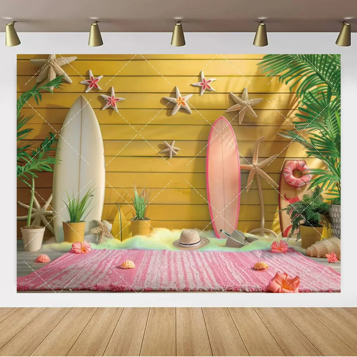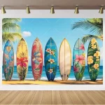 하와이 서핑 보드 야자수 아기 생일 초상화 사진 배경 여름 열대 해변 파티 장식 배너 소품