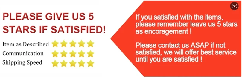 1.당사 제품과 서비스에 만족하신다면 별 5개 피드백을 남겨주시면 감사하겠습니다(설명된 항목 별 5개, 통신 별 5개, 배송 시간 별 5개).