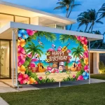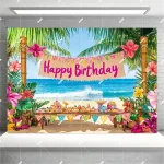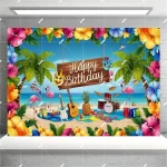 하와이 해변 파티 장식 배너, 여름 테마 파티 배경 천, 코코넛 나무 서핑 보드 해양 동물