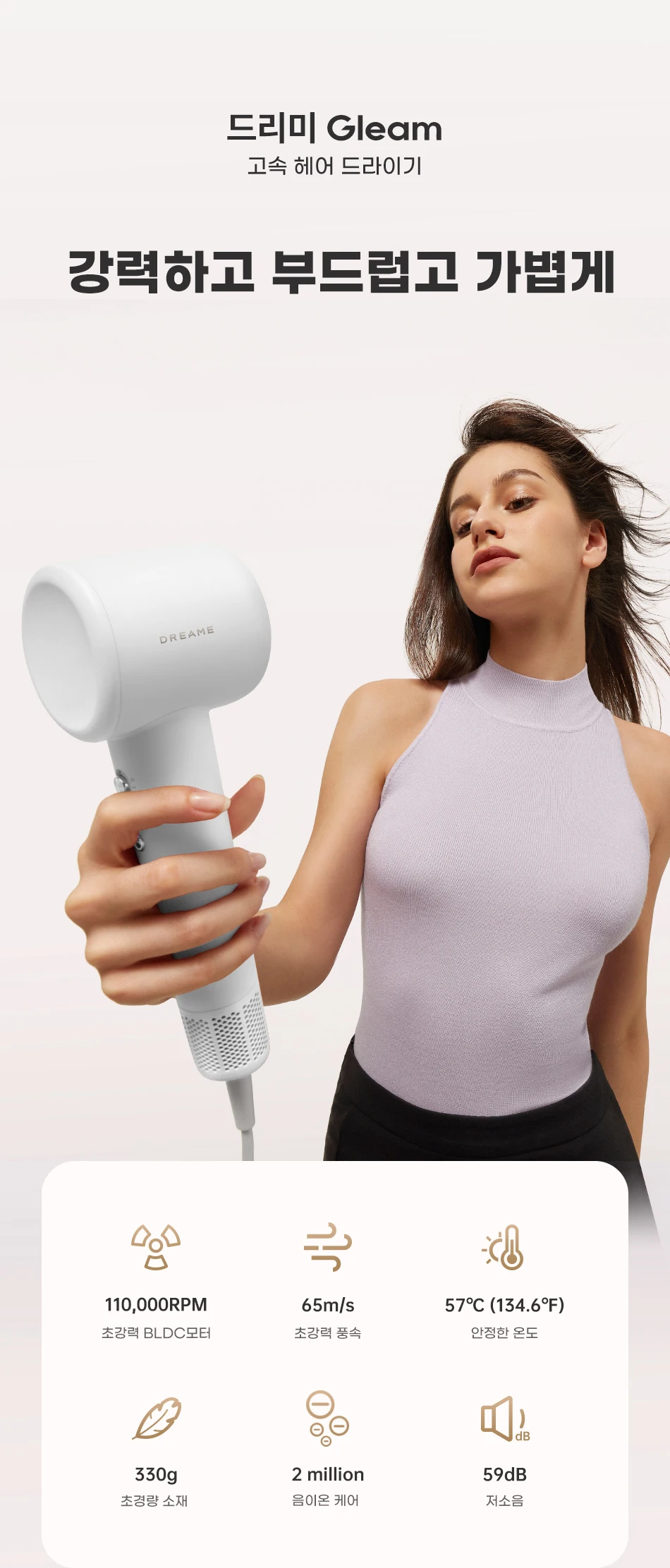 [한국버전 국내배송] Dreame Hair Gleam High-Speed Hair Dryer 드리미 3분 쾌속 드라이,2단계 속도 조정, 모발 손상 보호