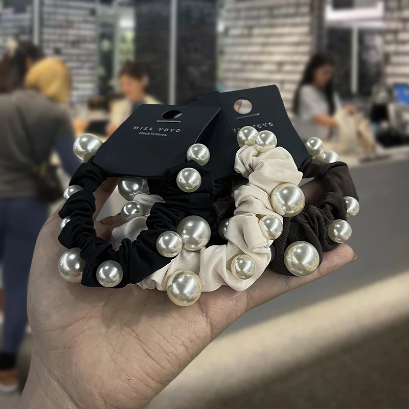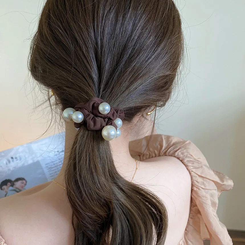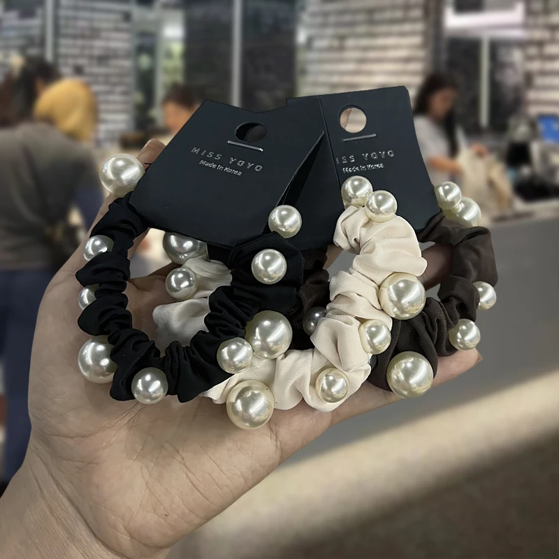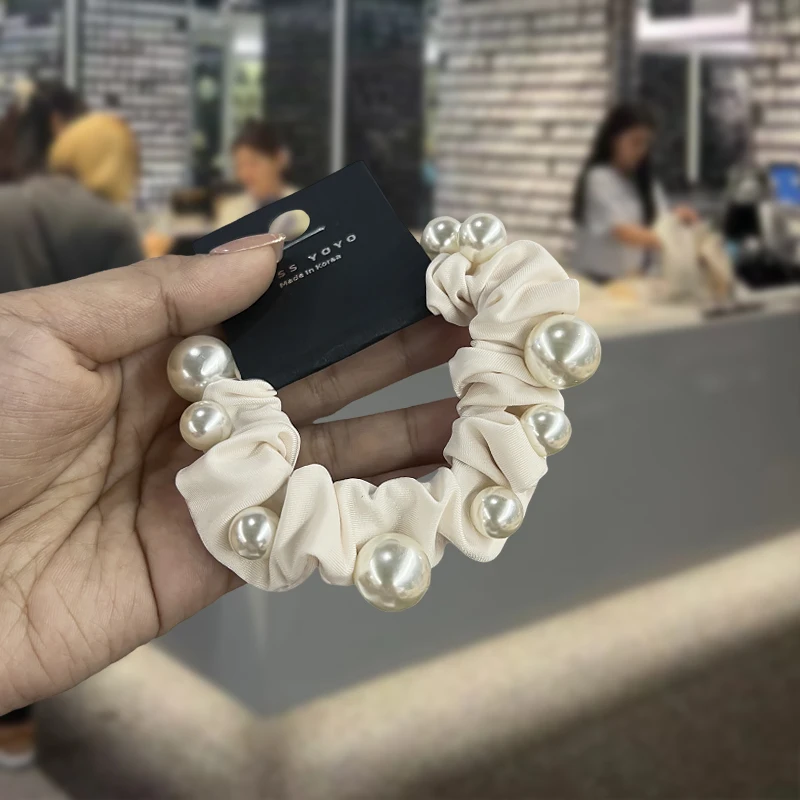 한국어 동대문 쥬얼리 헤어 로프 프리미엄 진주 헤드 로프 타이 포니 테일 새로운 소장 헤어 링
