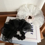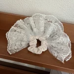 “한국 감성 더블 레이어 자수 스커트 레이스 대장 스크런치 헤어플라워, 발레 스타일 포니테일 헤어밴드 1개”의 첫 상품평을 남겨주세요