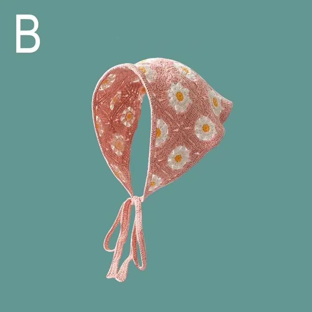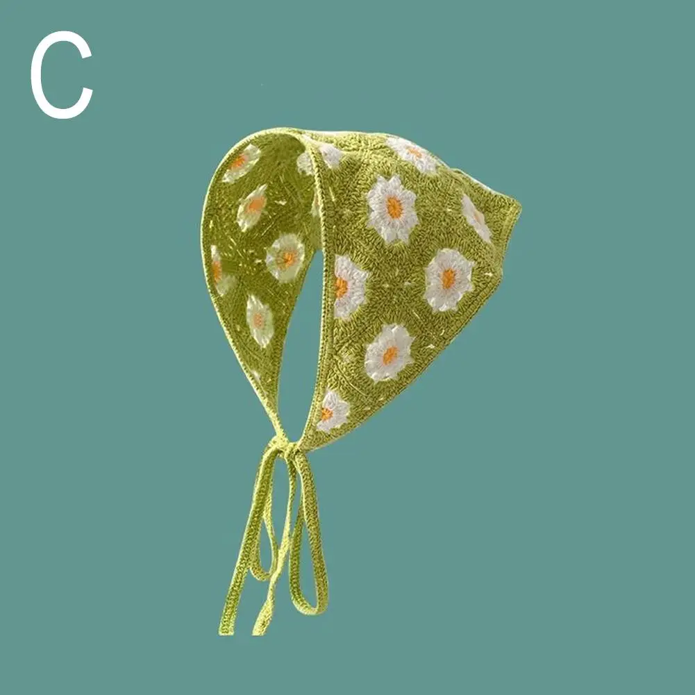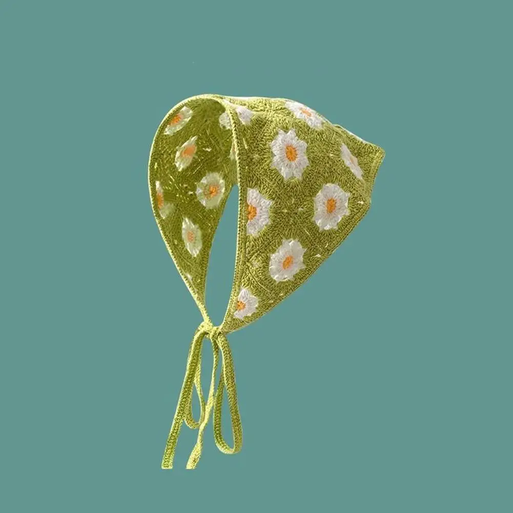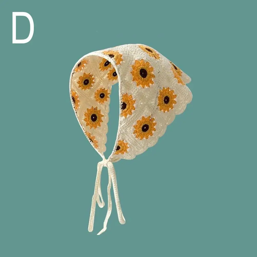 한국 귀여운 수제 크로셰 할로우 삼각형 머리띠 수건, 용수철 및 여름 여행 문학 사진 헤어 스카프