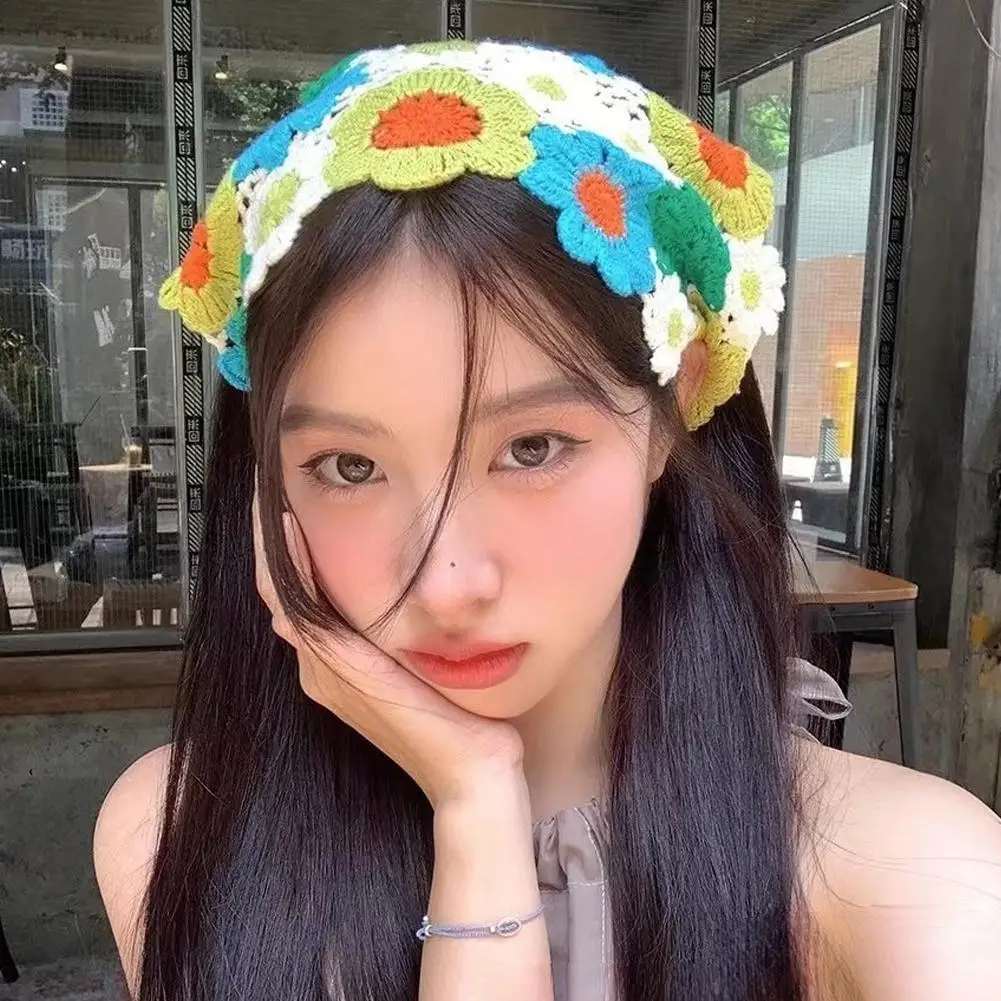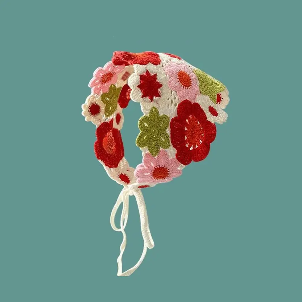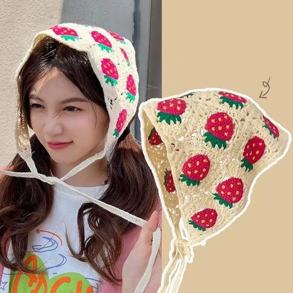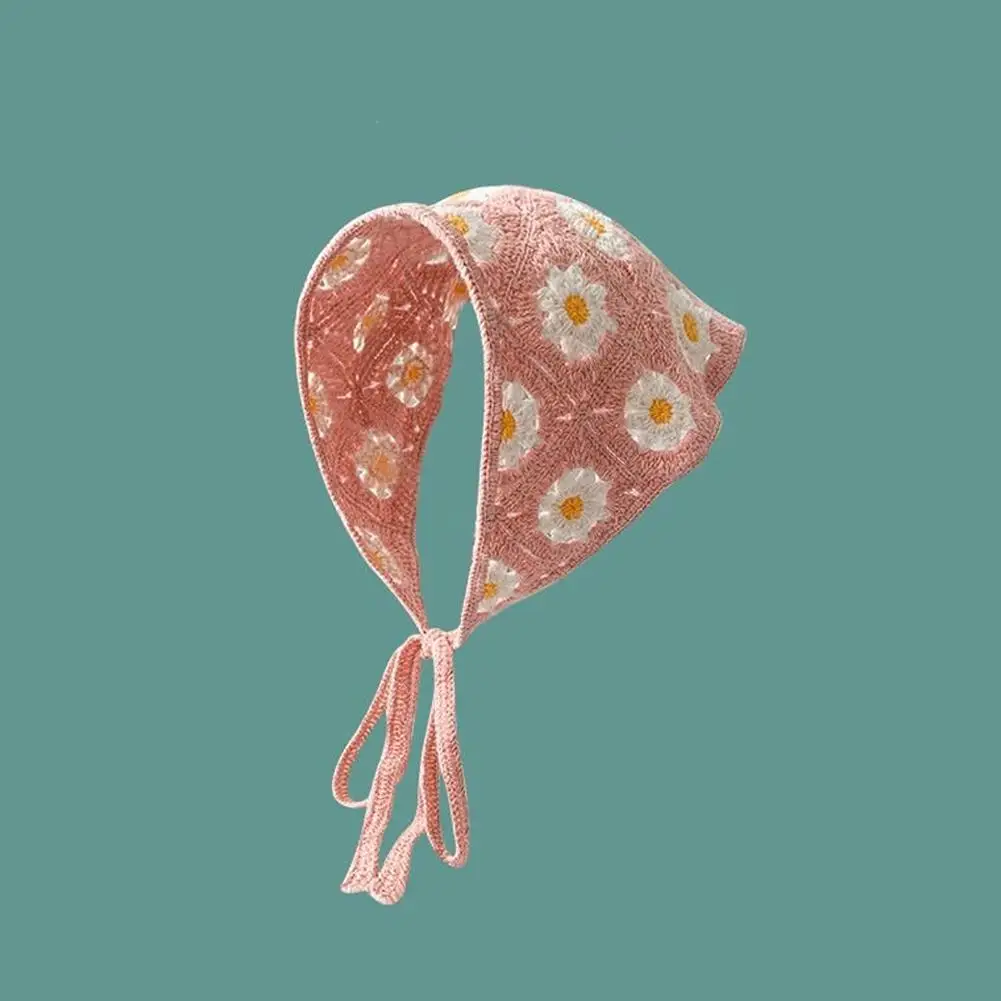 한국 귀여운 수제 크로셰 할로우 삼각형 머리띠 수건, 용수철 및 여름 여행 문학 사진 헤어 스카프