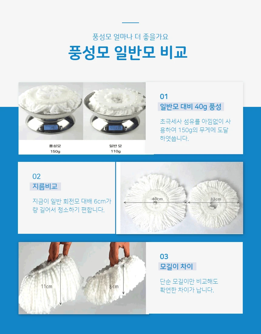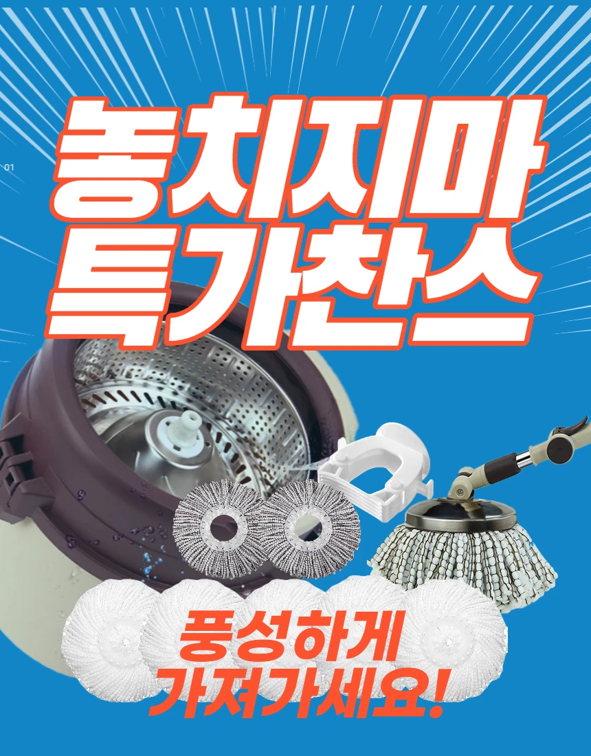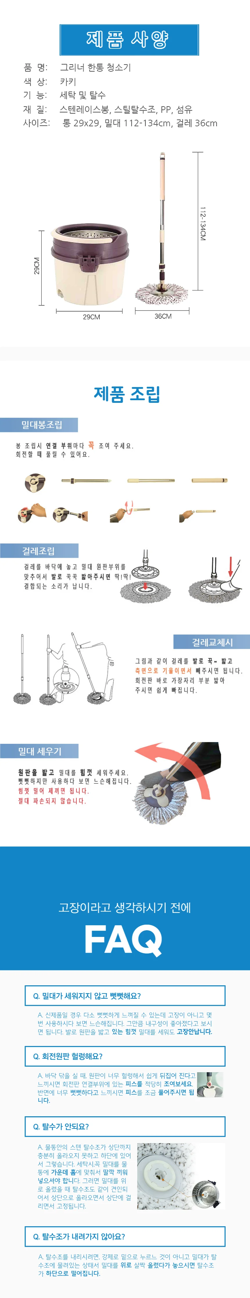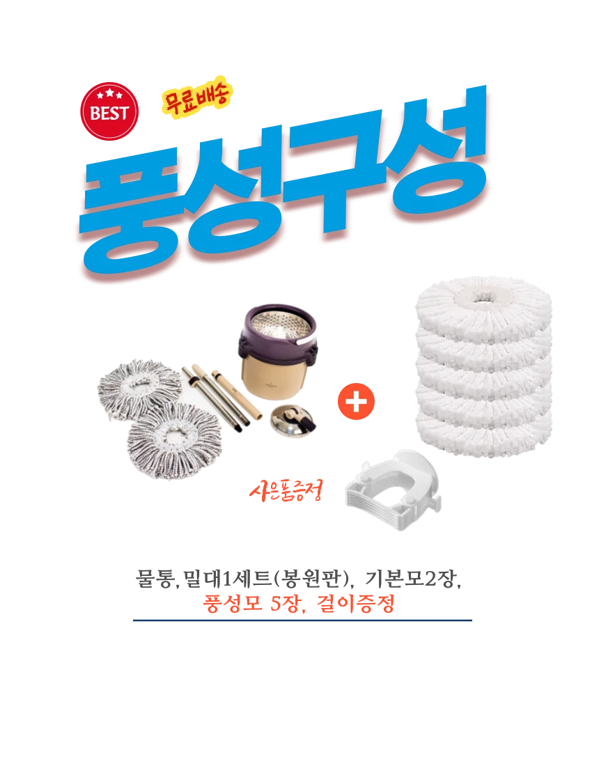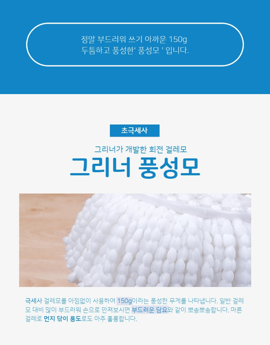 한통 대걸레 물걸레 풍성세트 기본모2장+풍성모5장 추가! 도구걸이 증정!