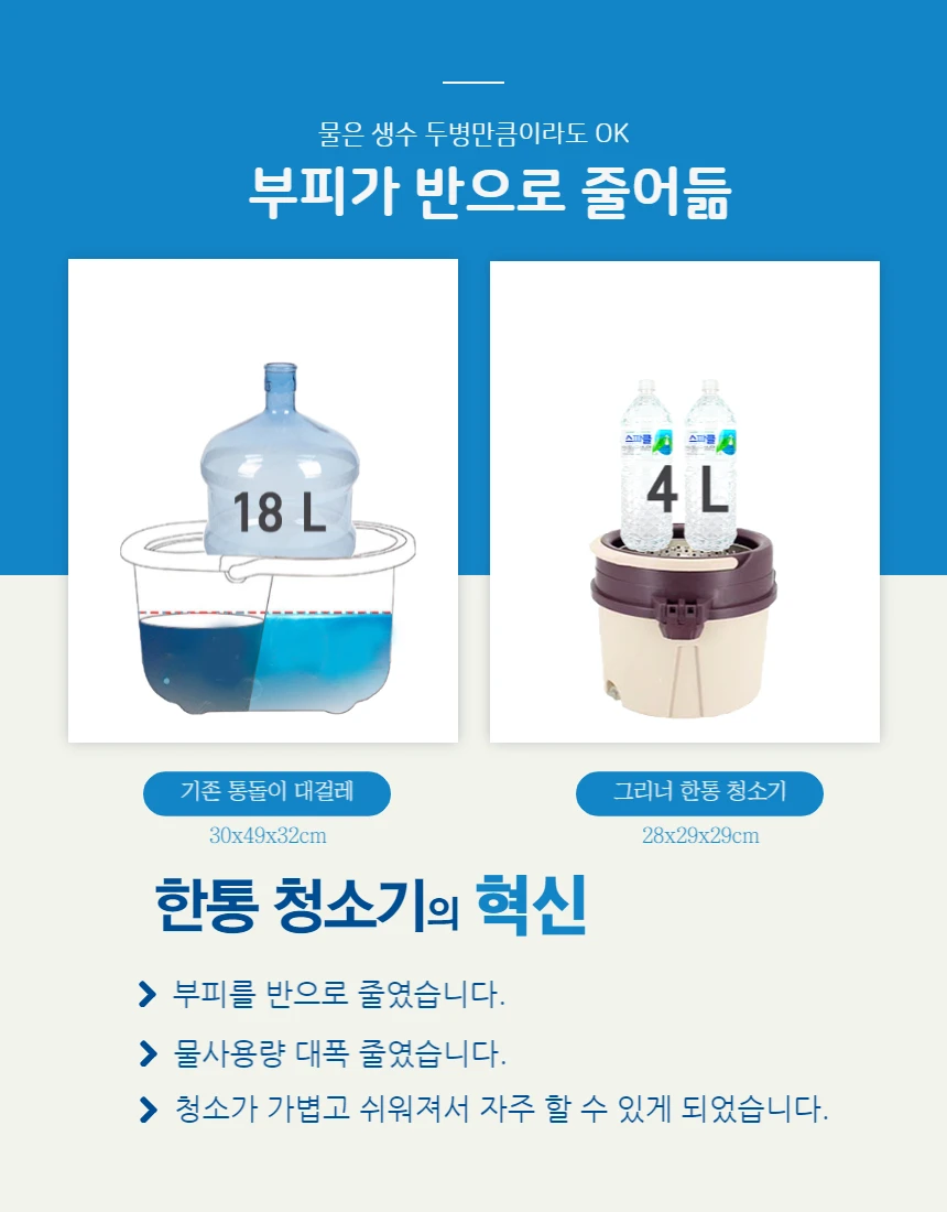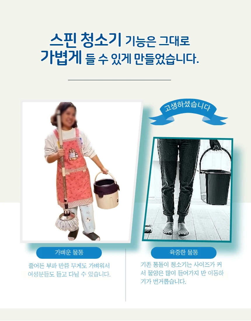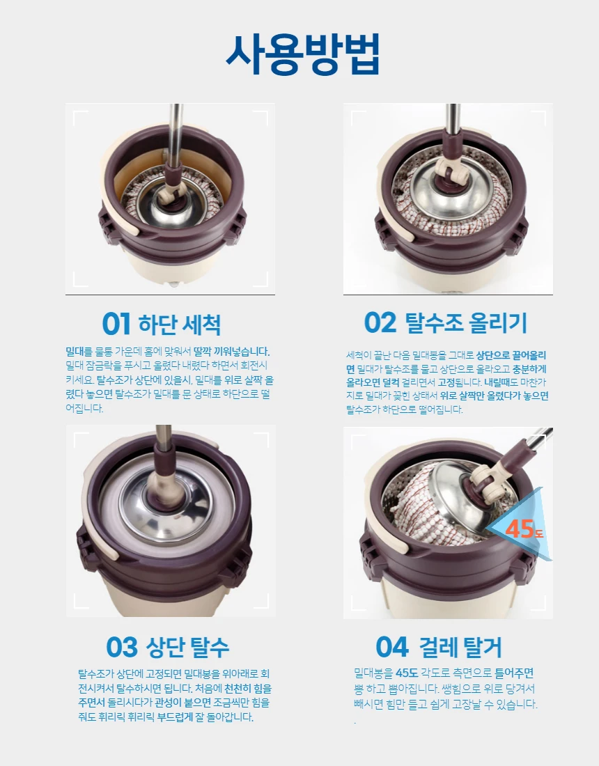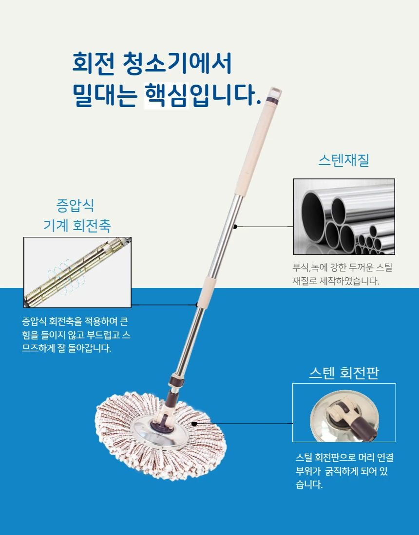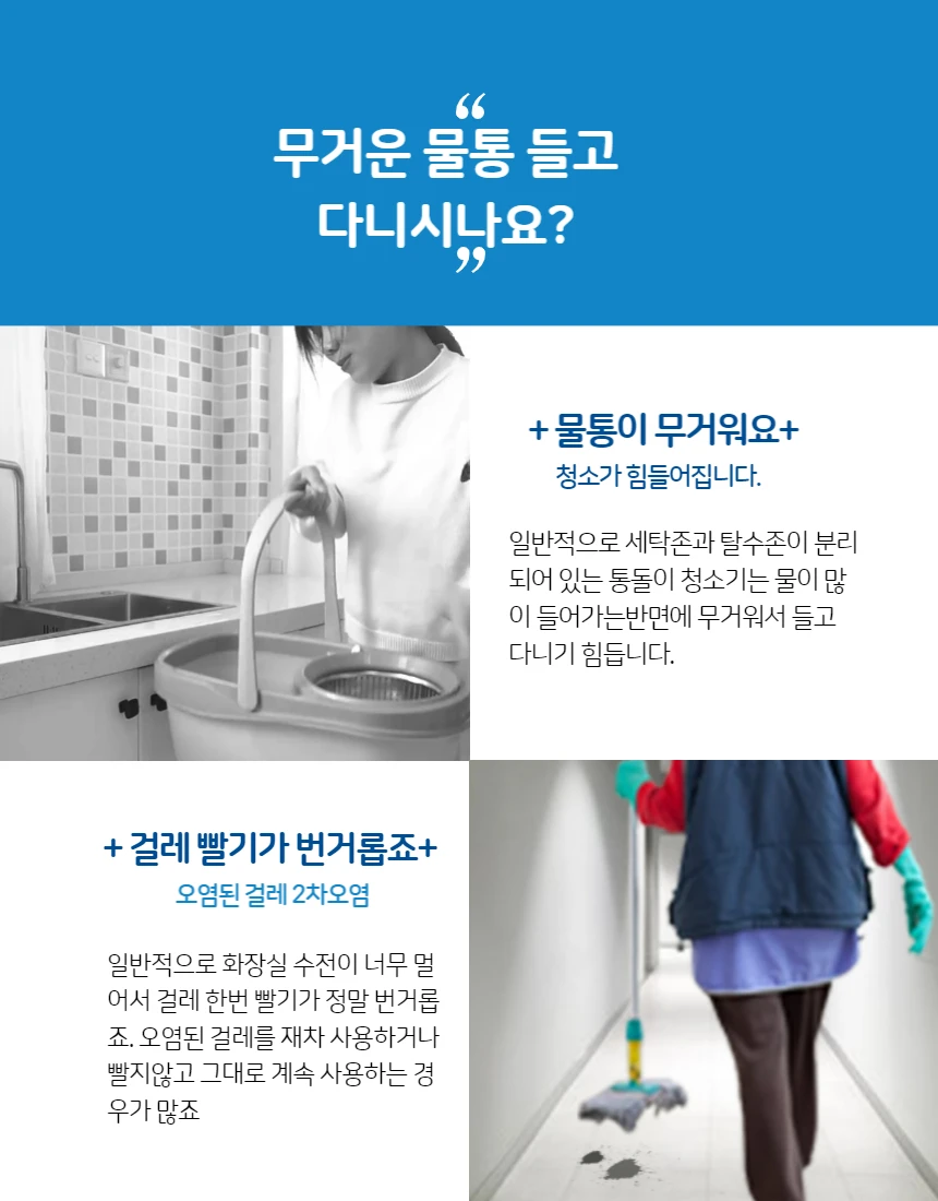 간편 청소 사각 통돌이 청소밀대 세트 물걸레 밀대