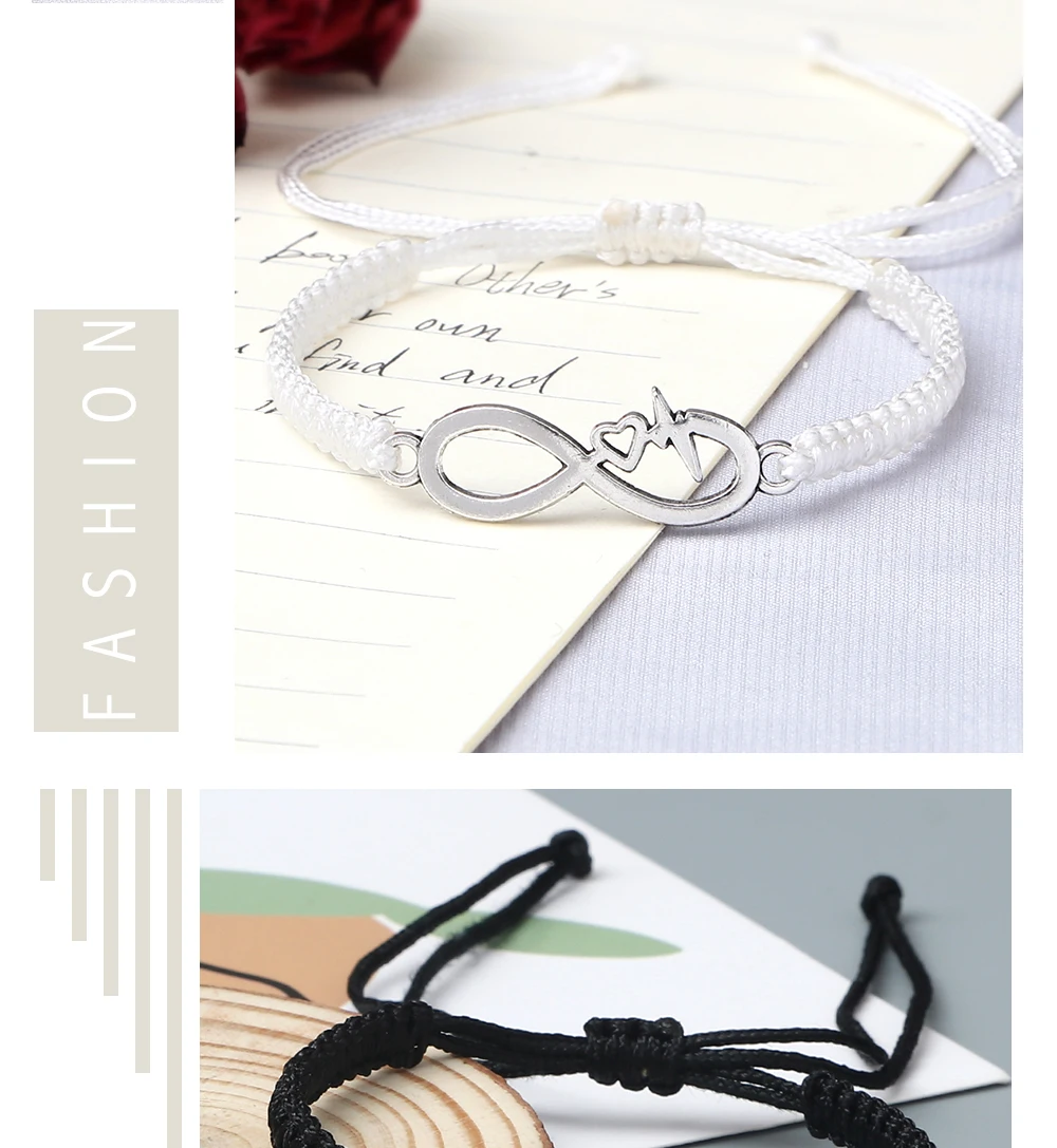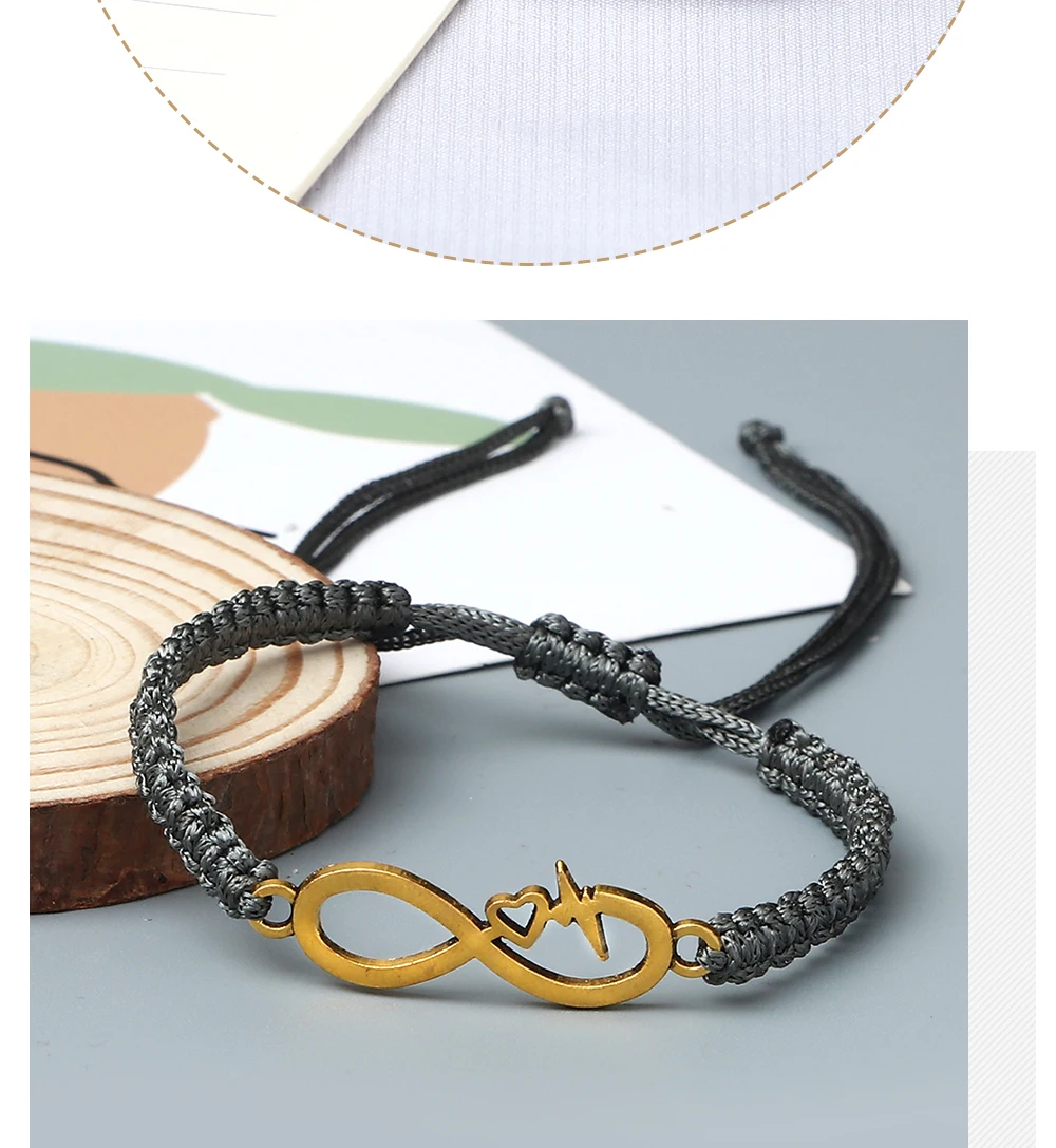 합금 인피니티 땋은 팔찌 레드 블랙 스레드 조정 가능한 수제 럭키 팔찌 & Bangles 남성 여성 요가 매력 보석 선물