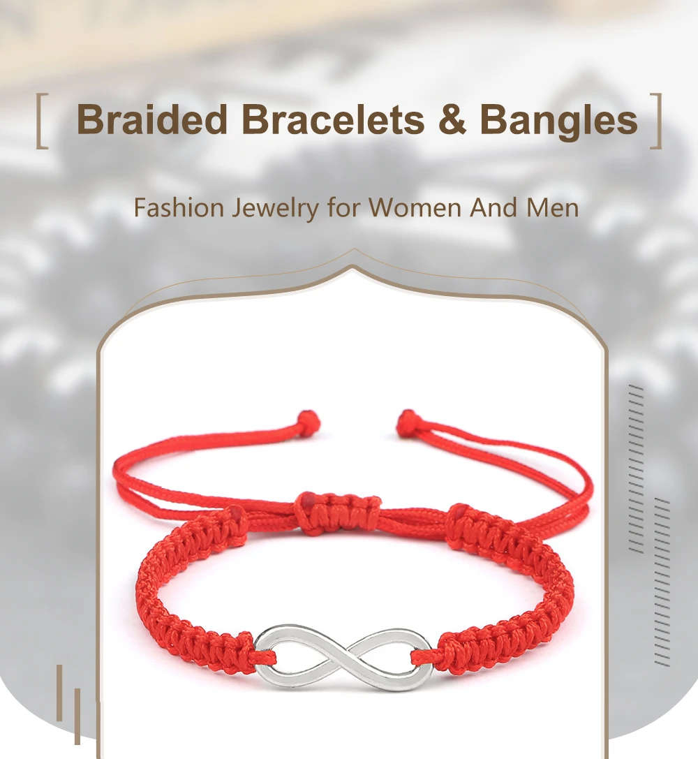 “합금 인피니티 땋은 팔찌 레드 블랙 스레드 조정 가능한 수제 럭키 팔찌 & Bangles 남성 여성 요가 매력 보석 선물”의 첫 상품평을 남겨주세요