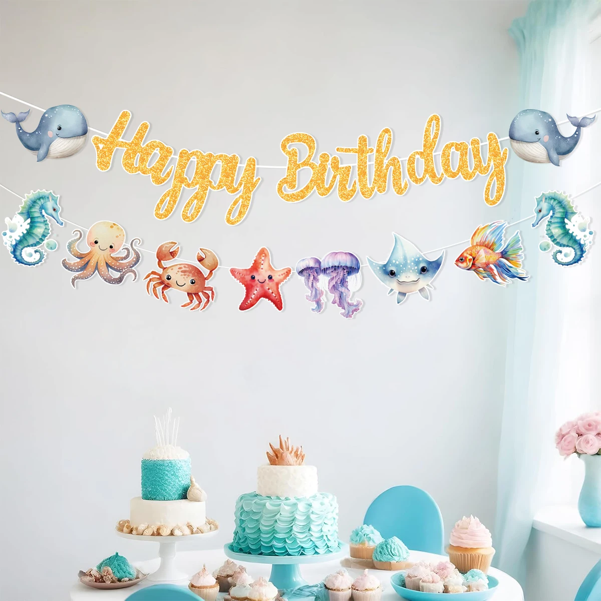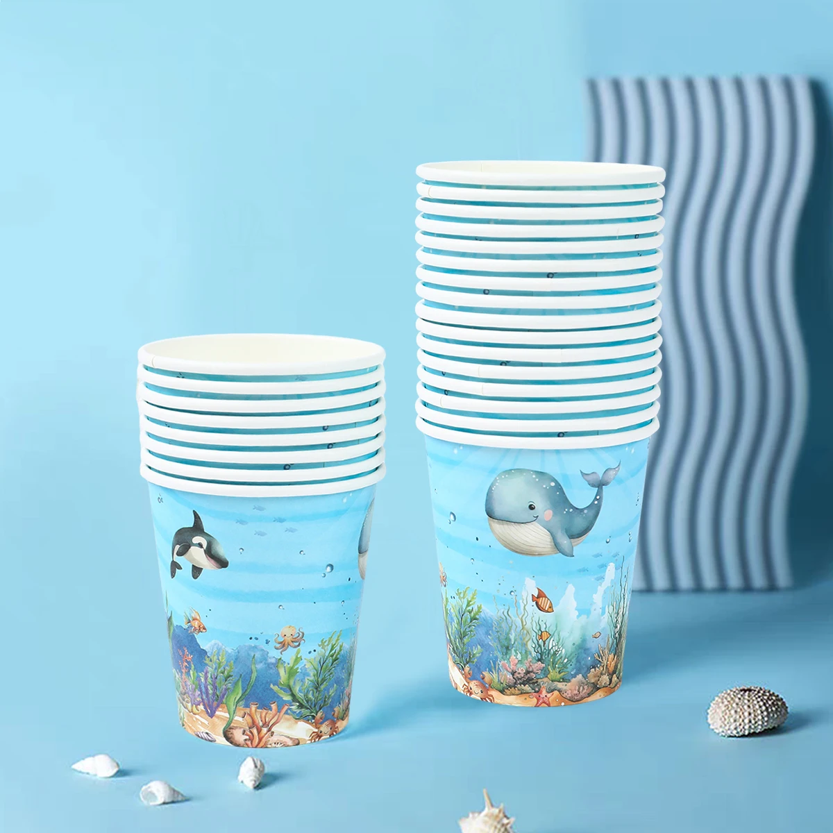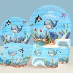 해양 동물 일회용 식기, 생일 파티 장식, 어린이 선물, 바다 테마, 베이비 샤워 용품, 해피 1 주년 선물
