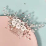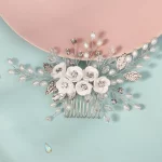 화이트 소프트 세라믹 플라워 여성용 헤어 빗, 진주 라인석 데일리 헤어 클립, 웨딩 파티 신부 주얼리 머리 장식