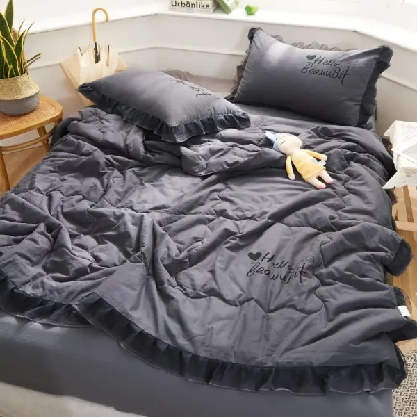 여름 퀼트 2025 새로운 씻어 면화 한국어 Ins 레이스 조각난 시리즈 에어컨 퀼트 고품질 여름 담요 세트