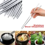 휴대용 금속 중국 젓가락, 미끄럼 방지 스테인레스 스틸, 중국 음식 젓가락 스틱, 재사용 가능 주방 식기 도구, 1 쌍, 23cm