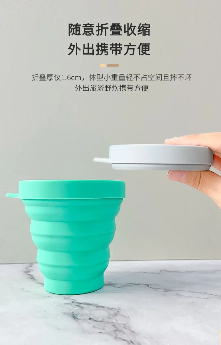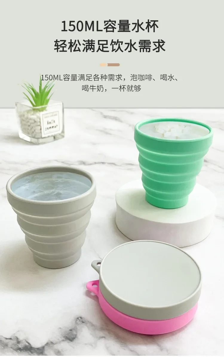 150ML 접이식 컵 미니 개폐식 실리콘 찻잔 야외 여행 커피 텔레스코픽 마시는 머그잔 뚜껑 내열성 휴대용