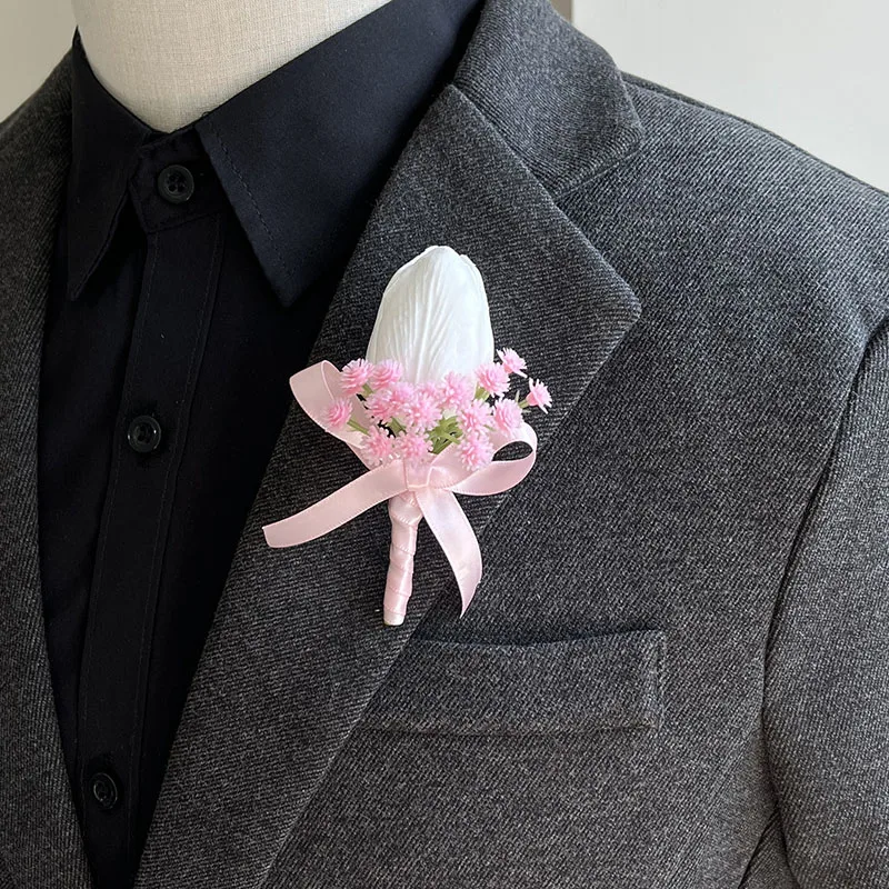 Q:부토니에 꽃을 착용하는 방법은 무엇입니까?