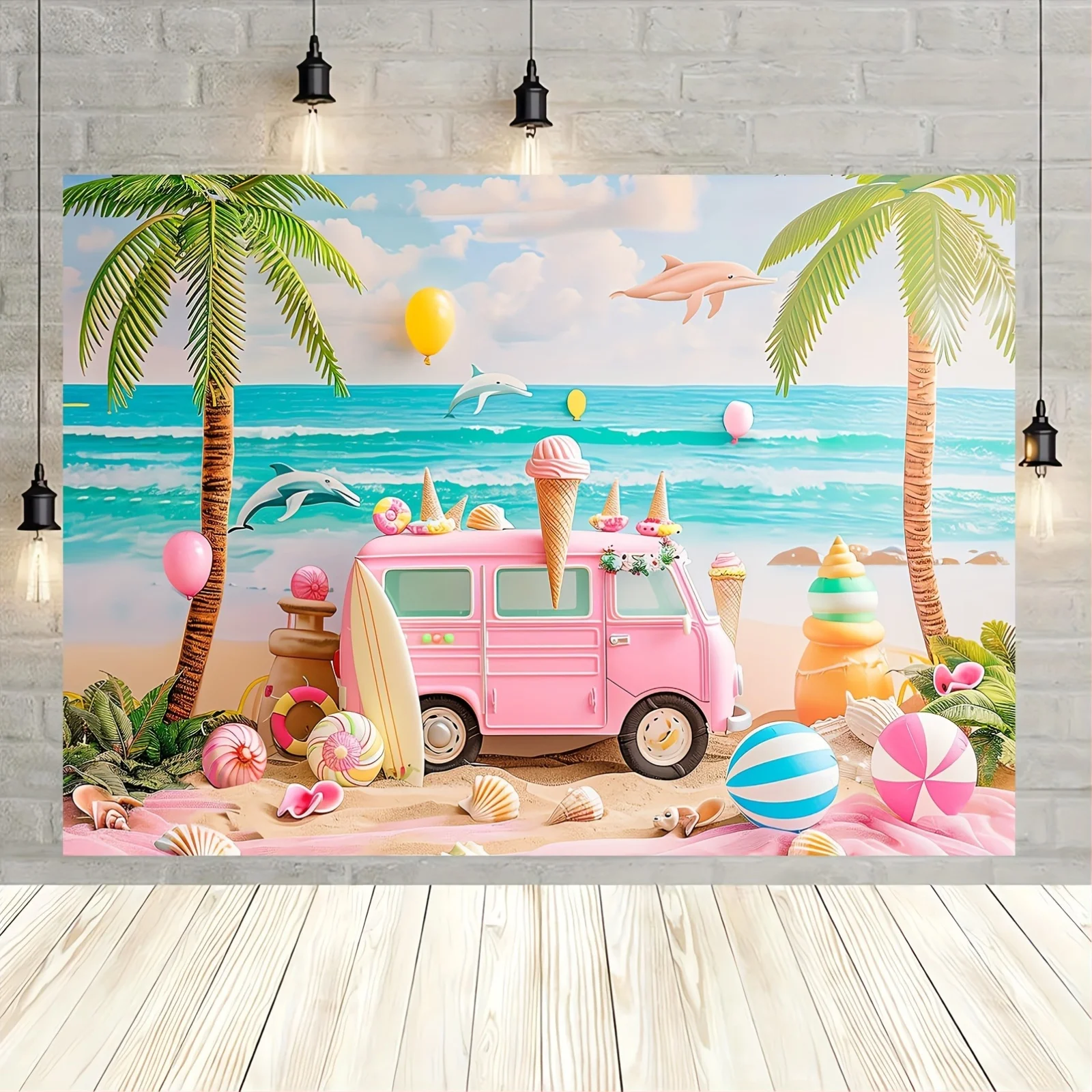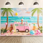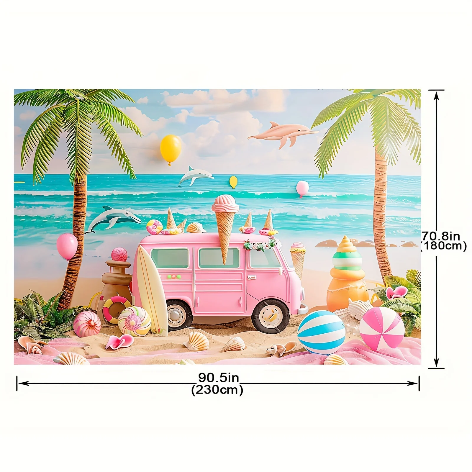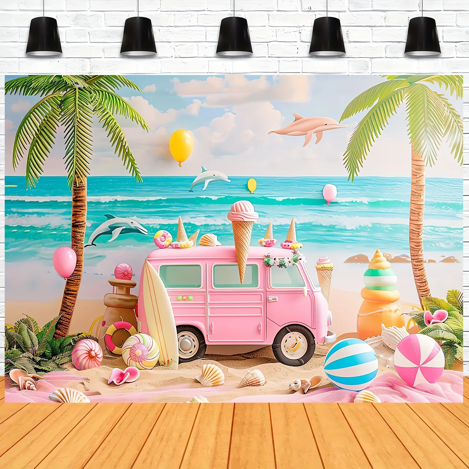 1개의 아이스크림 가게 여름 배경 배너, 열대 하와이 해변 바다 테마, 서핑 보드 바다 알로하 파티 장식
