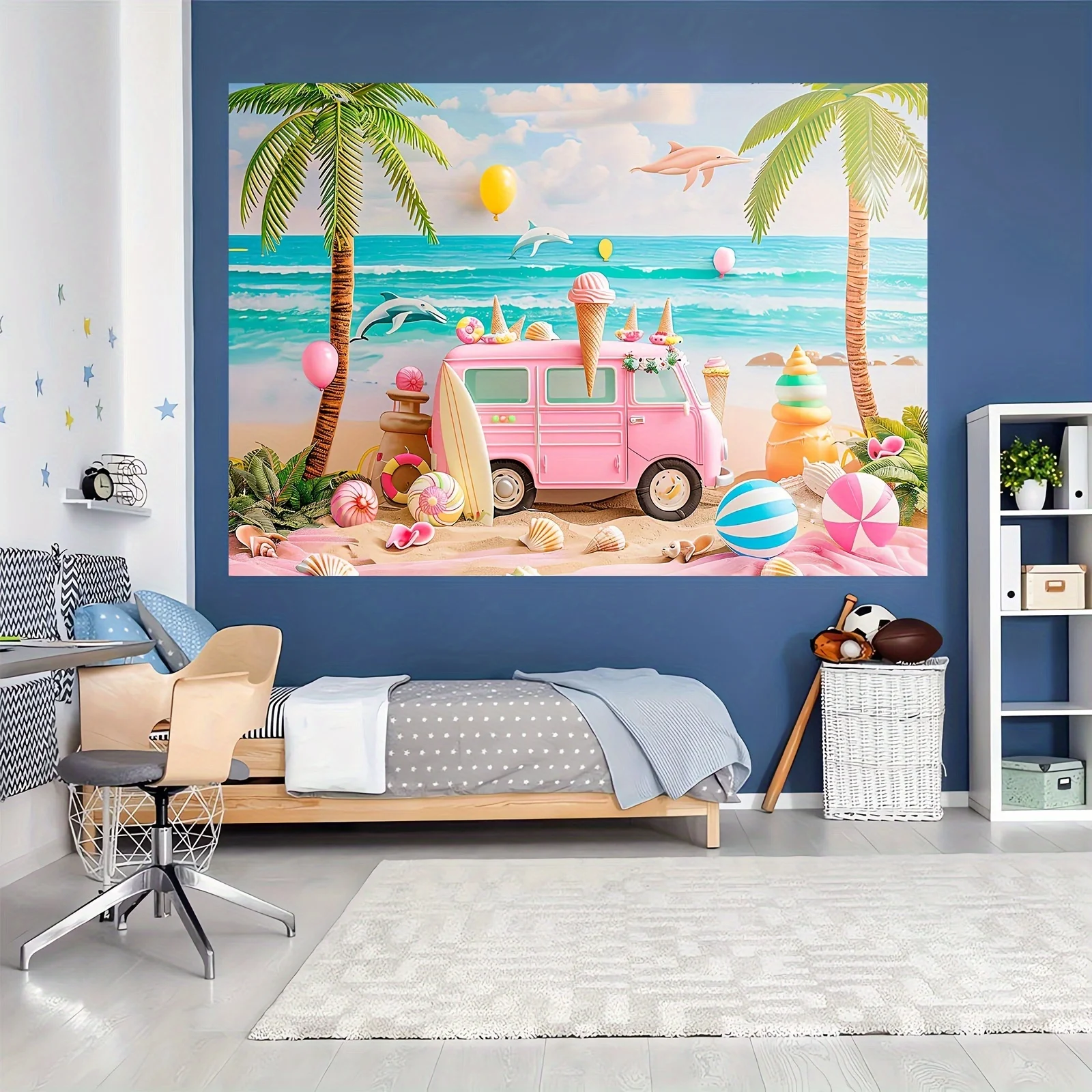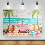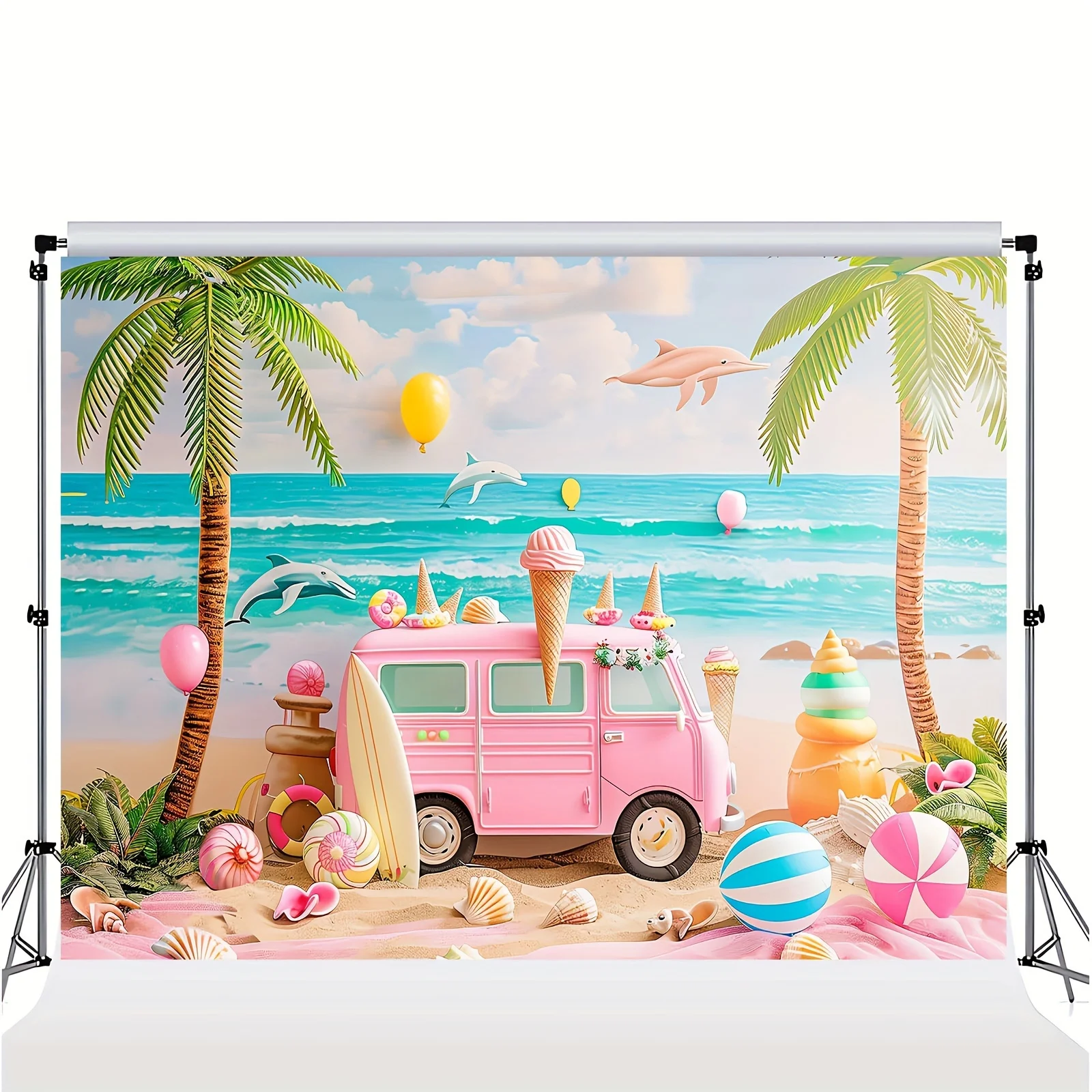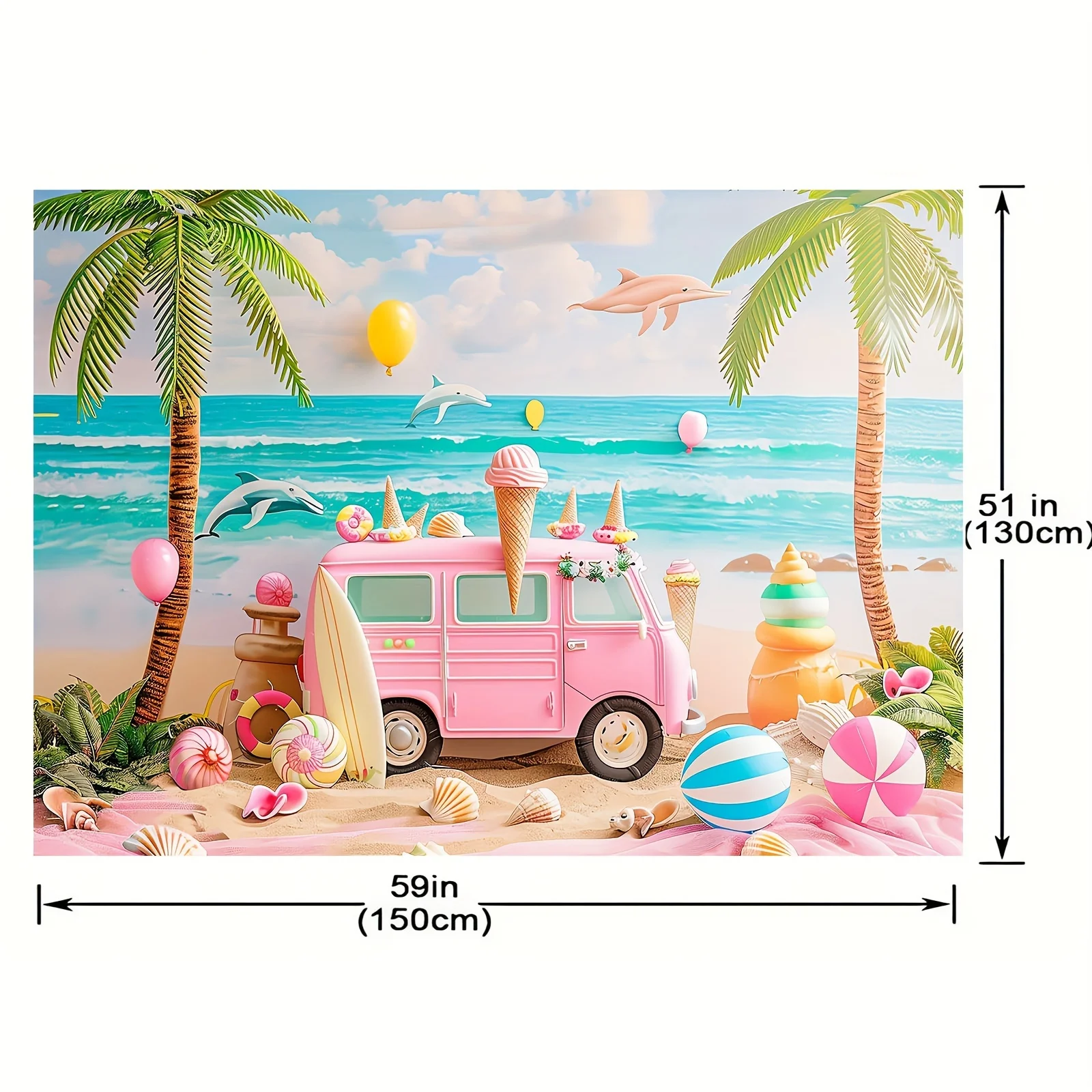 1개의 아이스크림 가게 여름 배경 배너, 열대 하와이 해변 바다 테마, 서핑 보드 바다 알로하 파티 장식